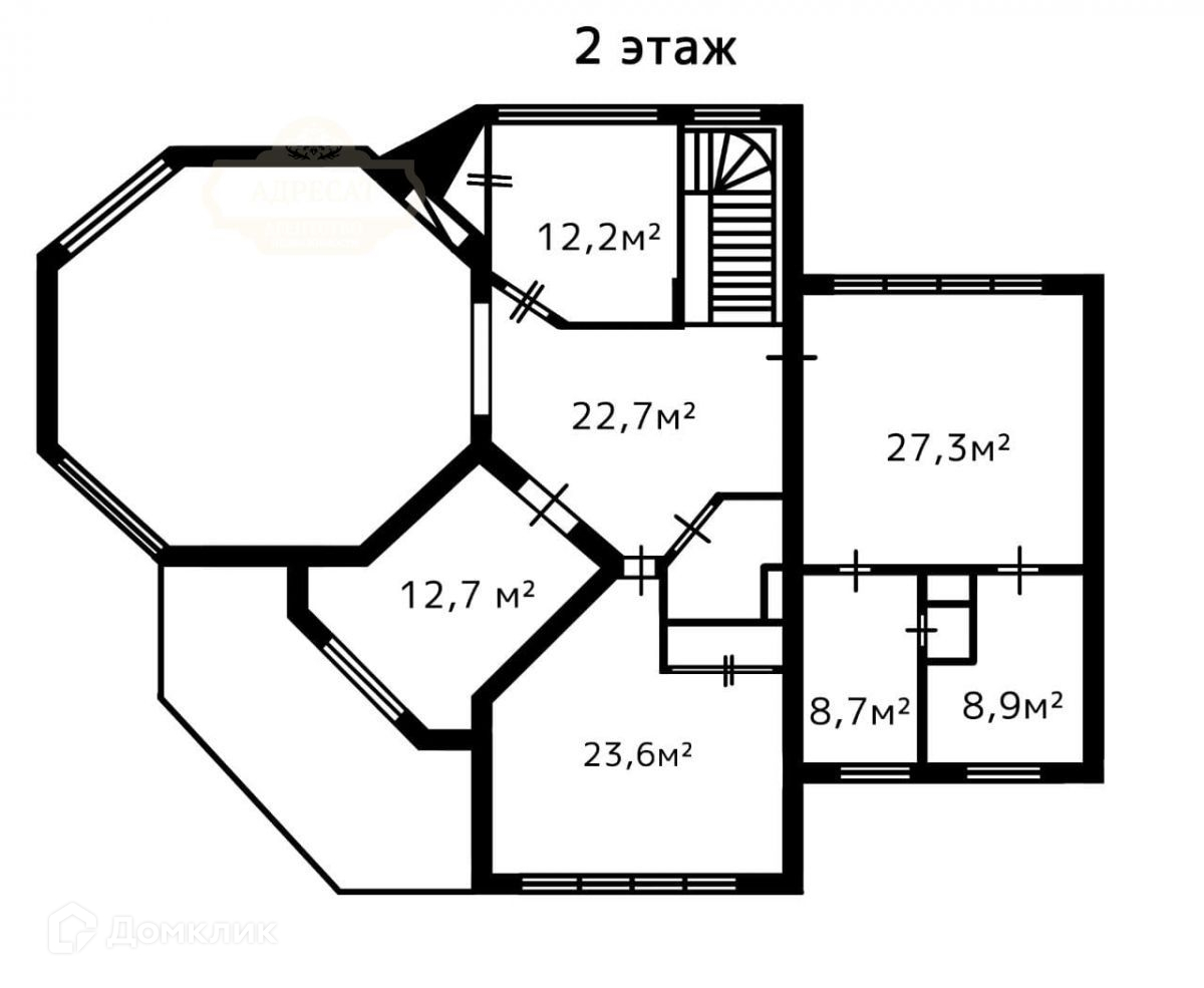 3 этаж - мастер спальня 27 кв. м. с гардеробной и санузлом, жилая комната №3- 23, 6 кв. м., жилая комната №4 - 12, 7 кв. м., жилая комната №5 - 12,2 кв. м.