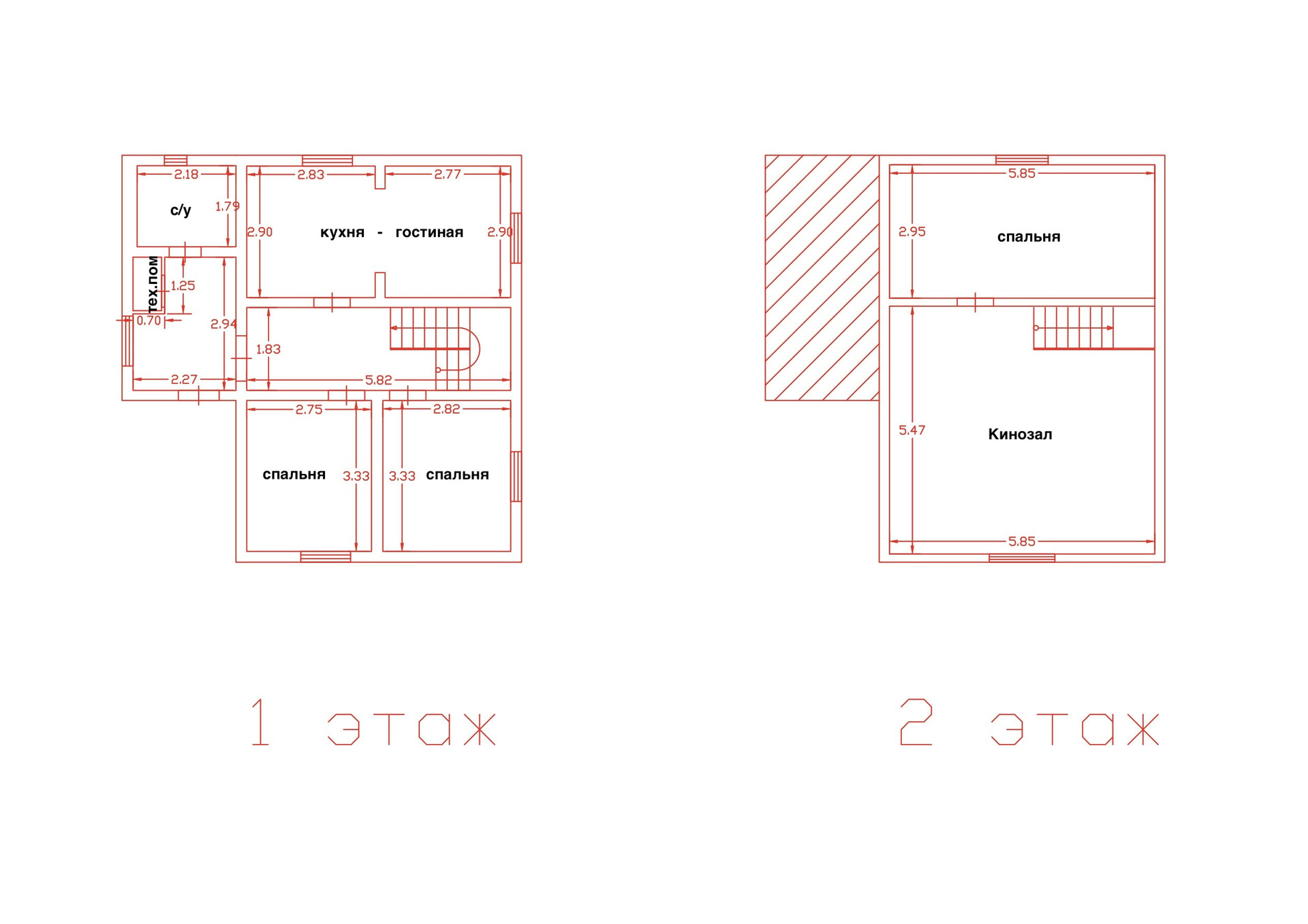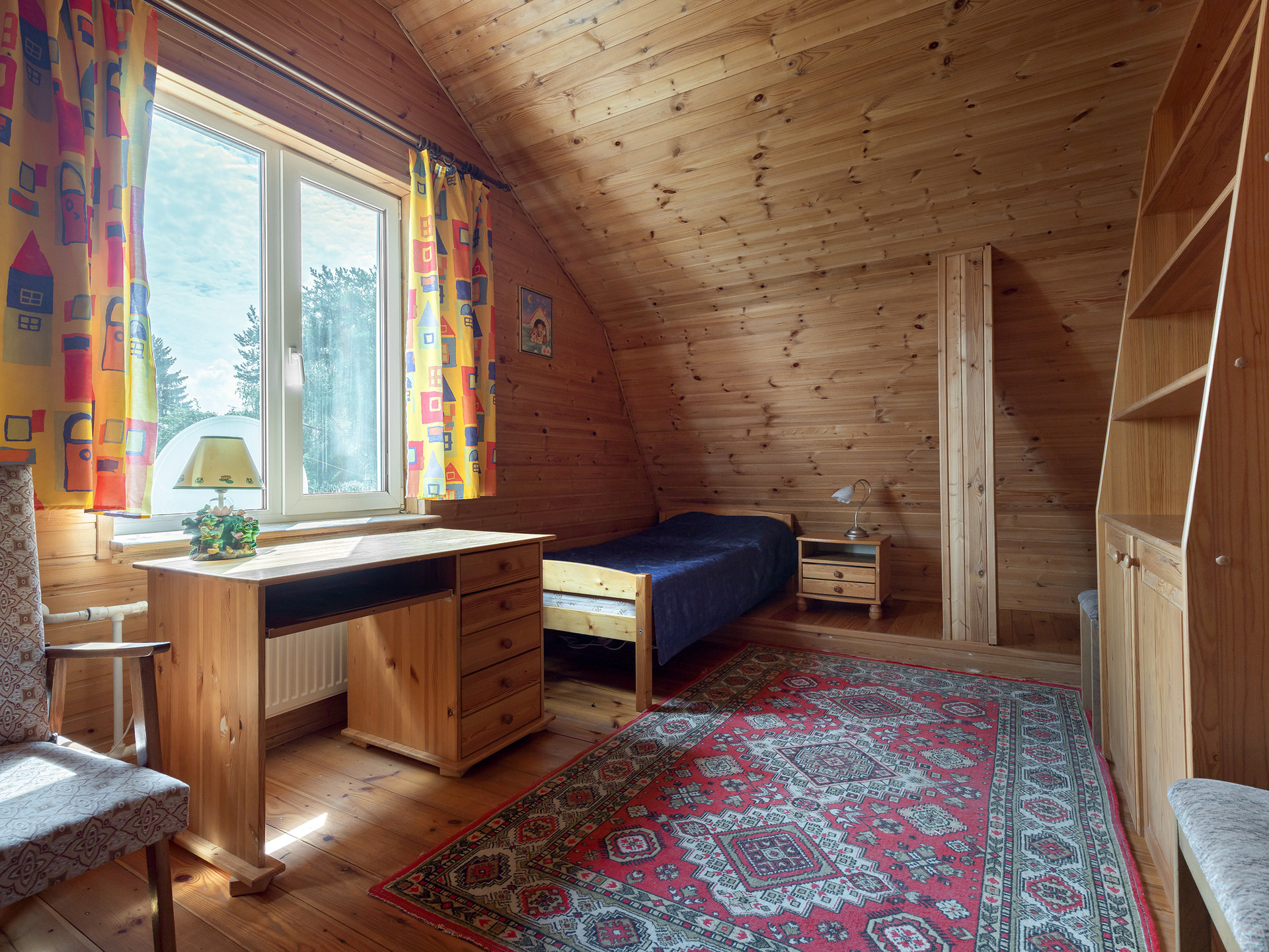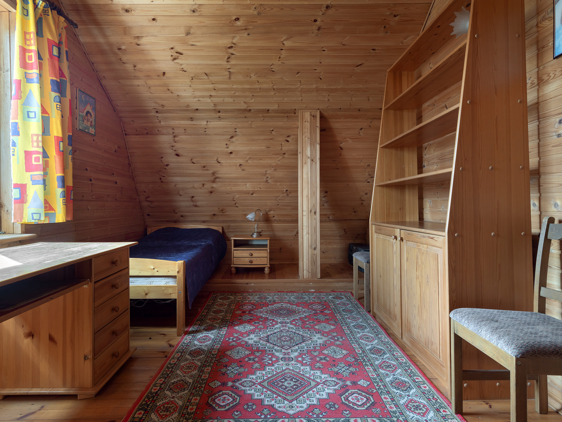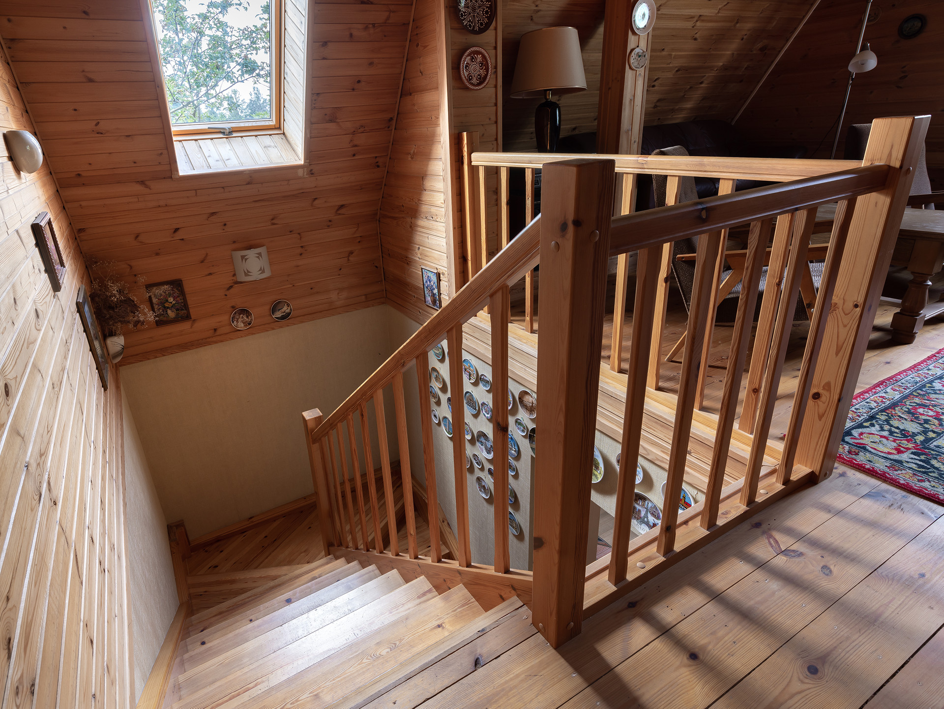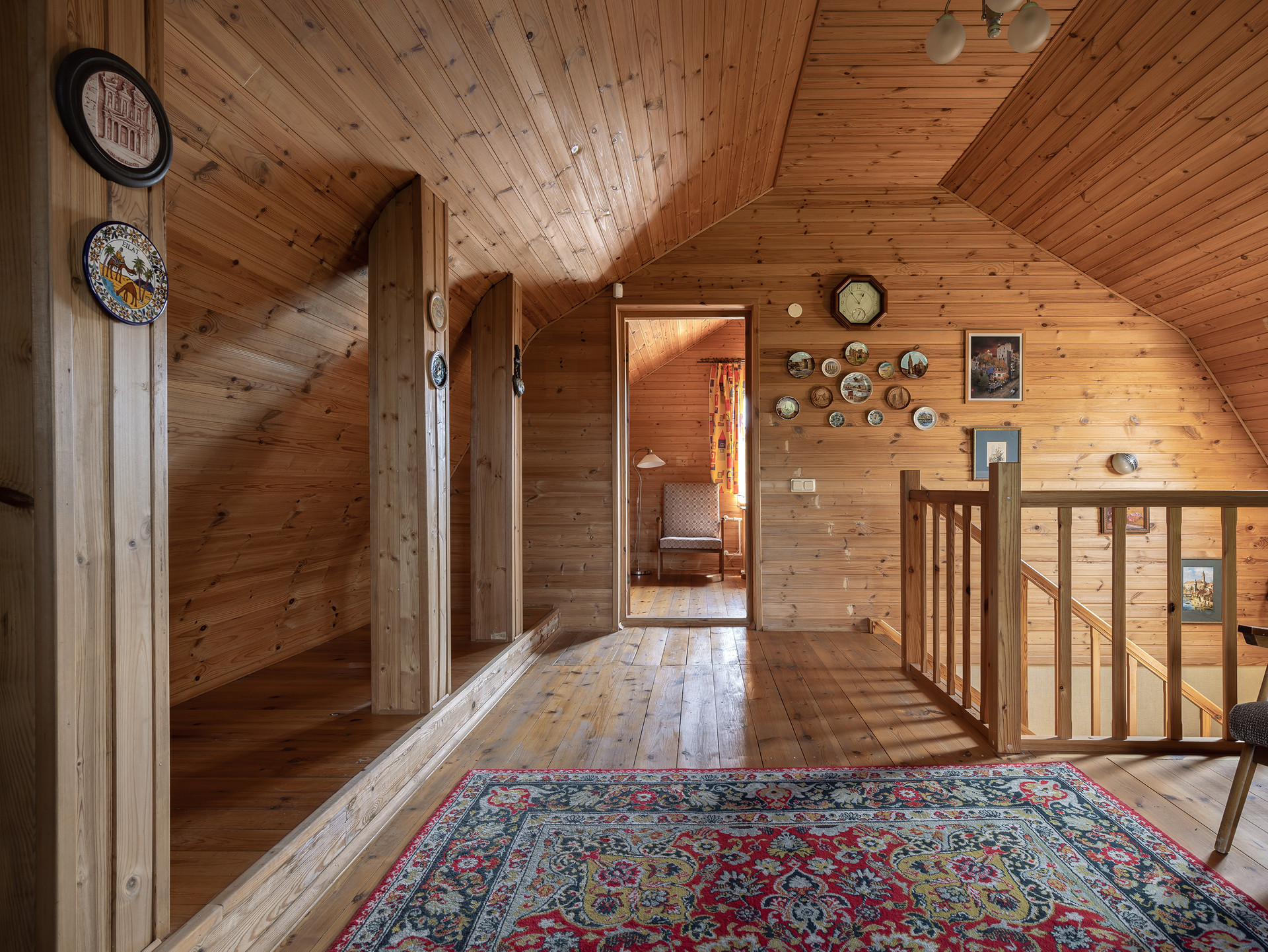 В доме три спальни, кухня-столовая-малая гостиная и большой (более 30 метров) зал на втором этаже.