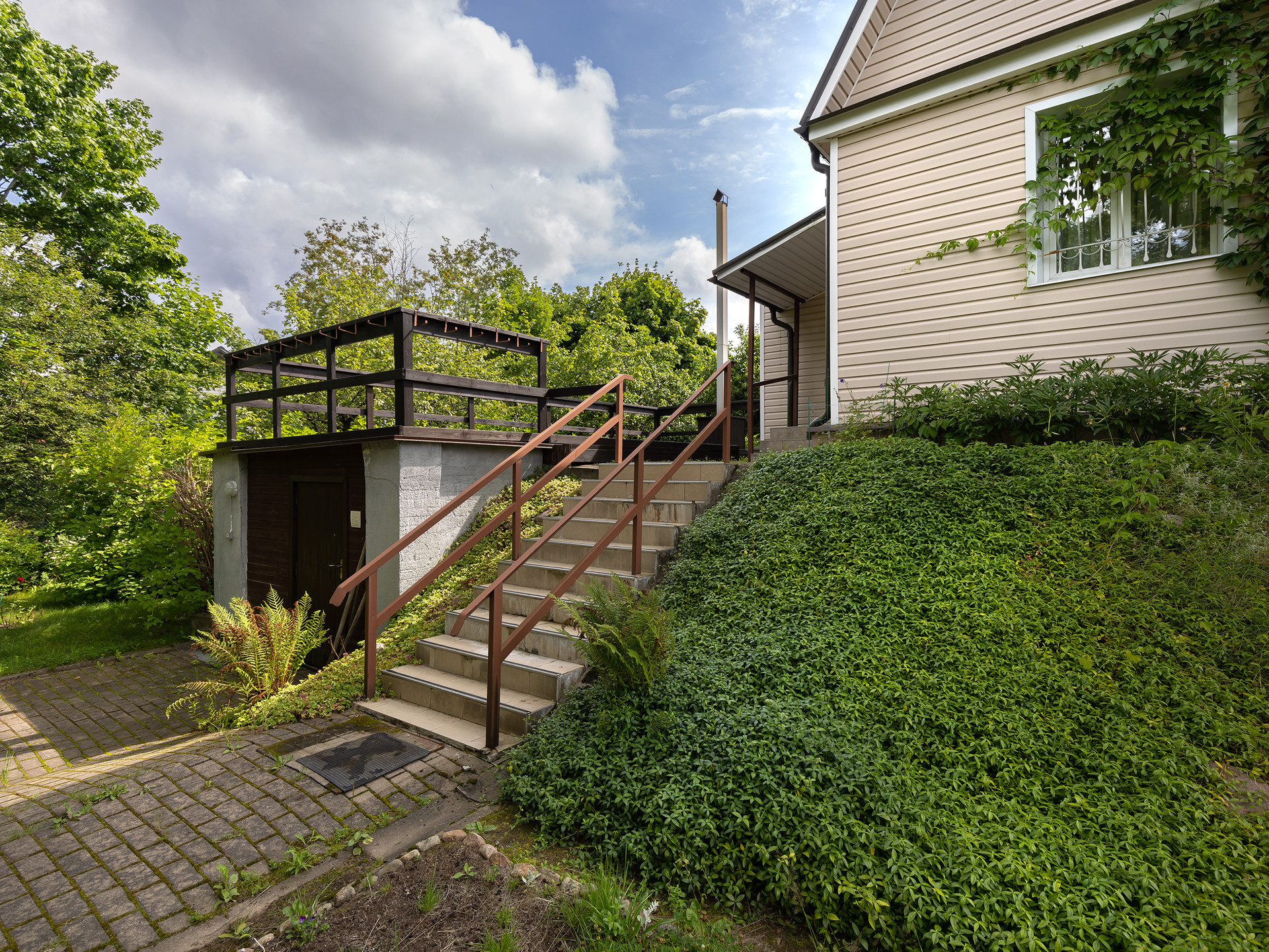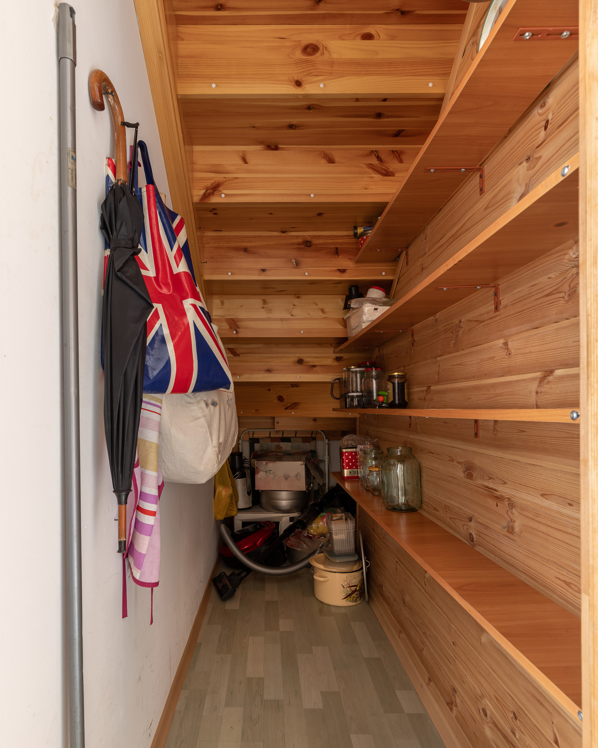 А ещё есть кладовая под лестницей и в подполье сухой, всегда прохладный, вентилируемый погреб.