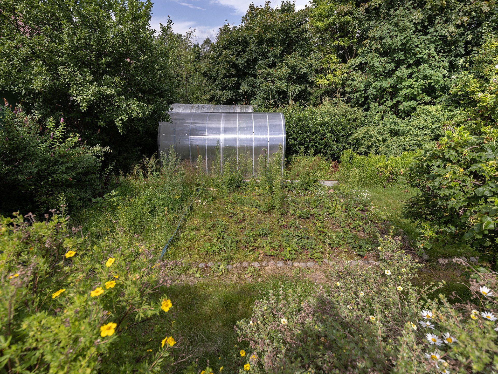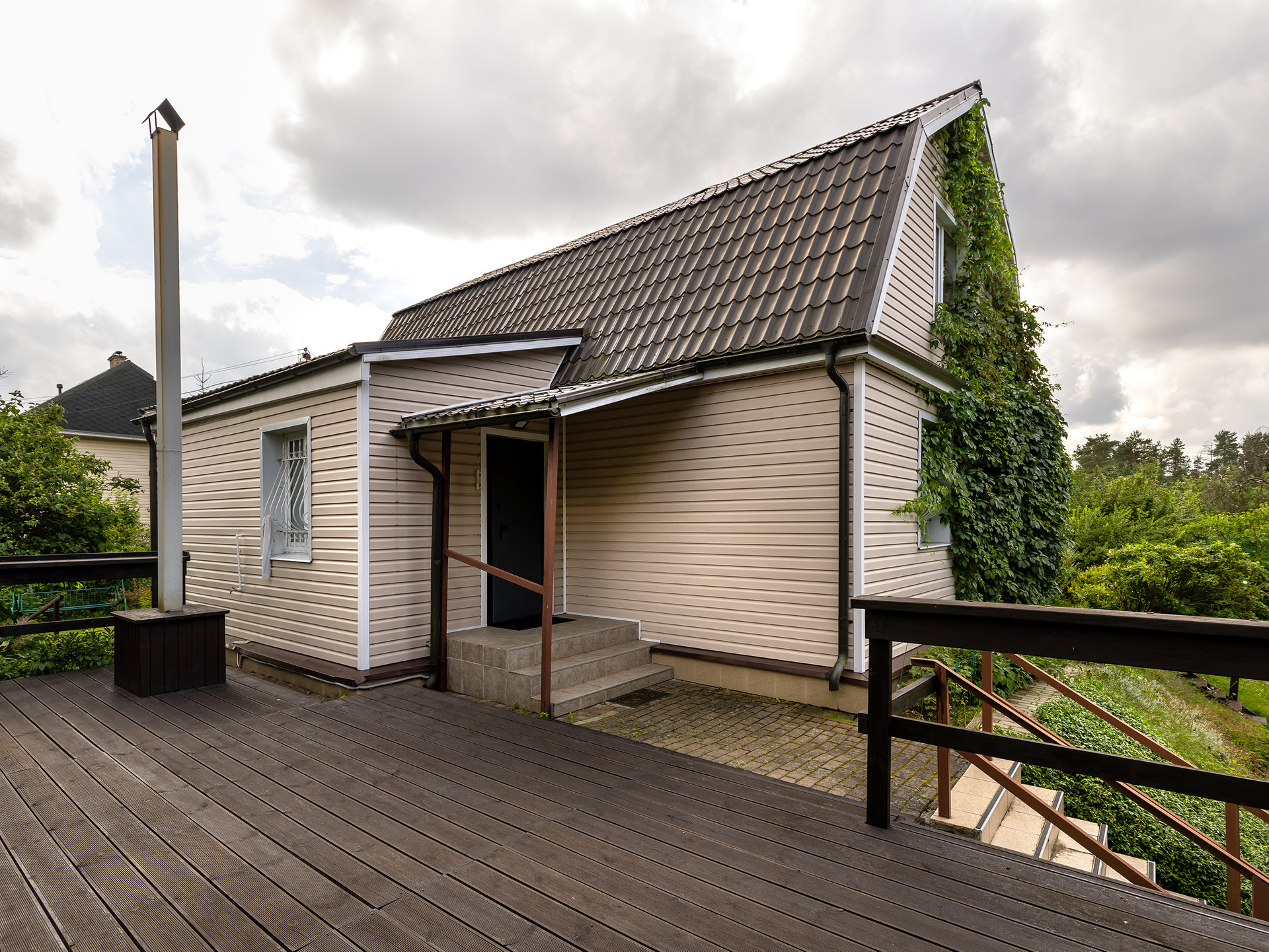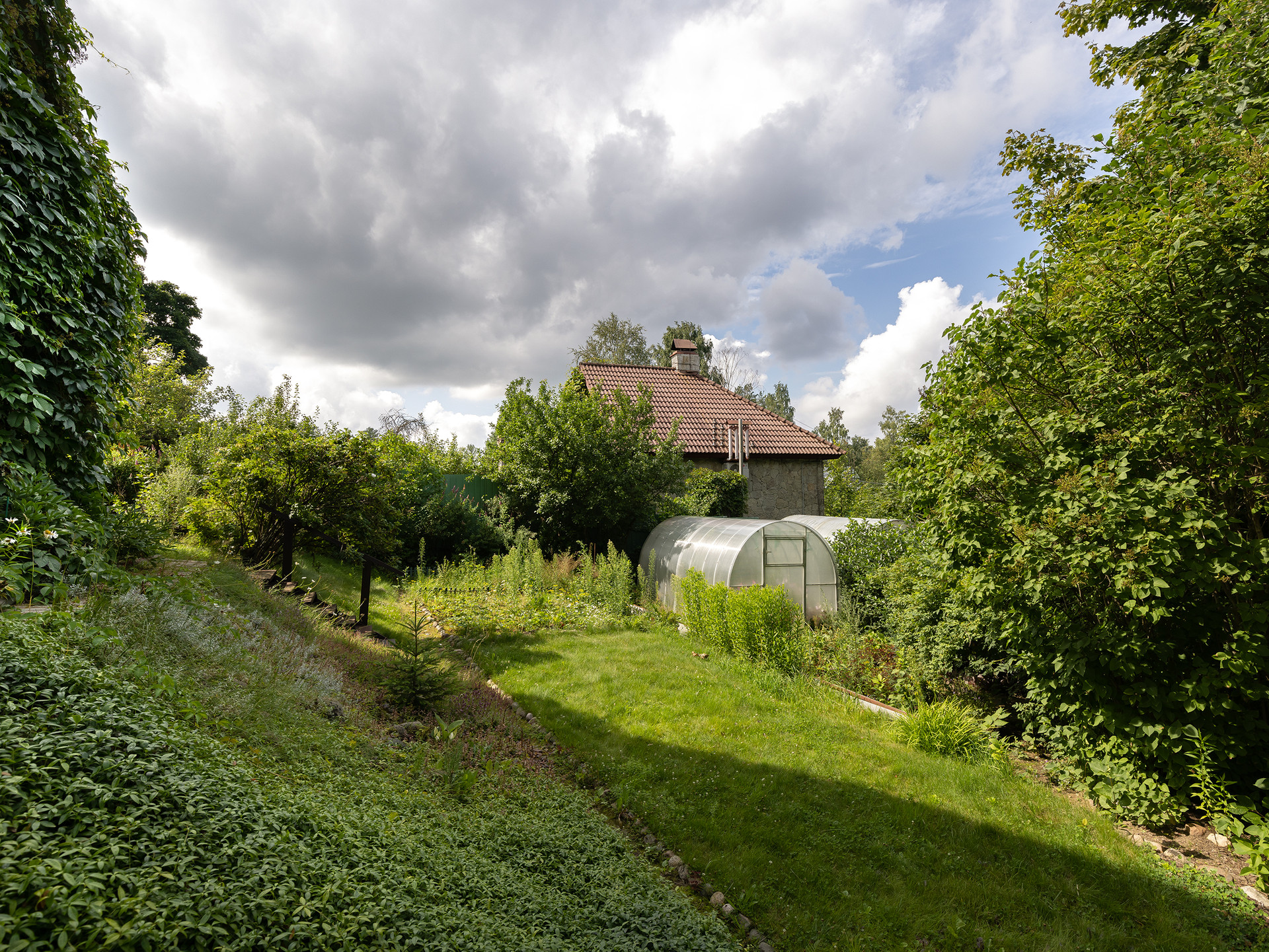 Дом может быть абсолютно автономным и никак не зависеть от внешних сетей ( только купить новый генератор дизельный) - все разводки  сделаны . На крыше бункера шикарная терраса - где можно загорать, отдыхать и делать барбекю. За домом - приватная зона с яблоневым садом и плодовыми кустарниками.