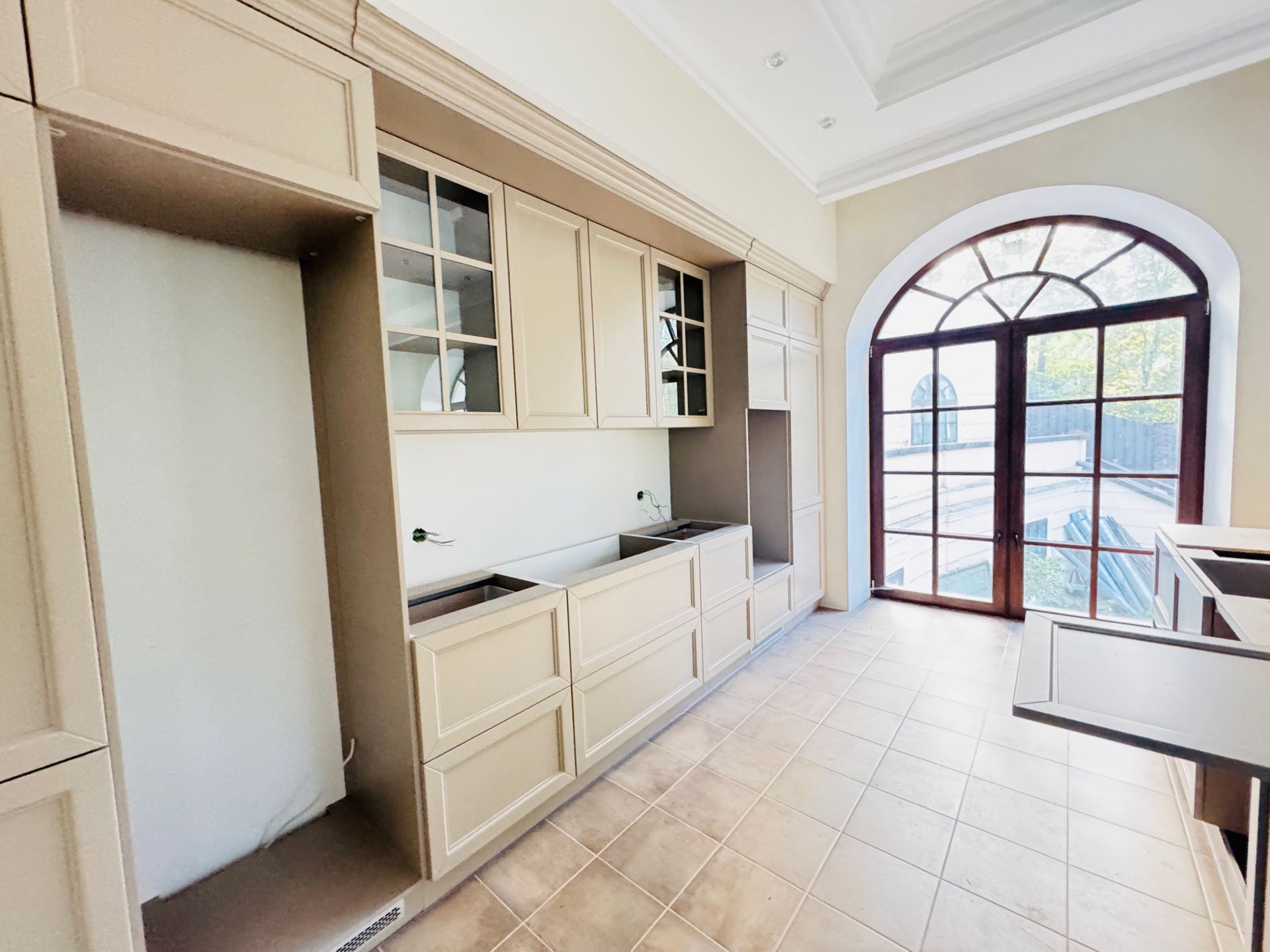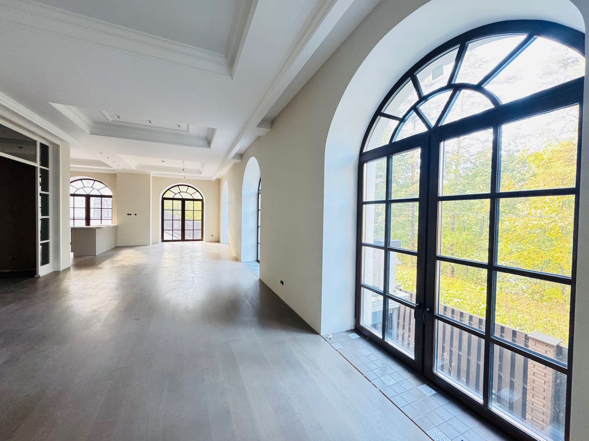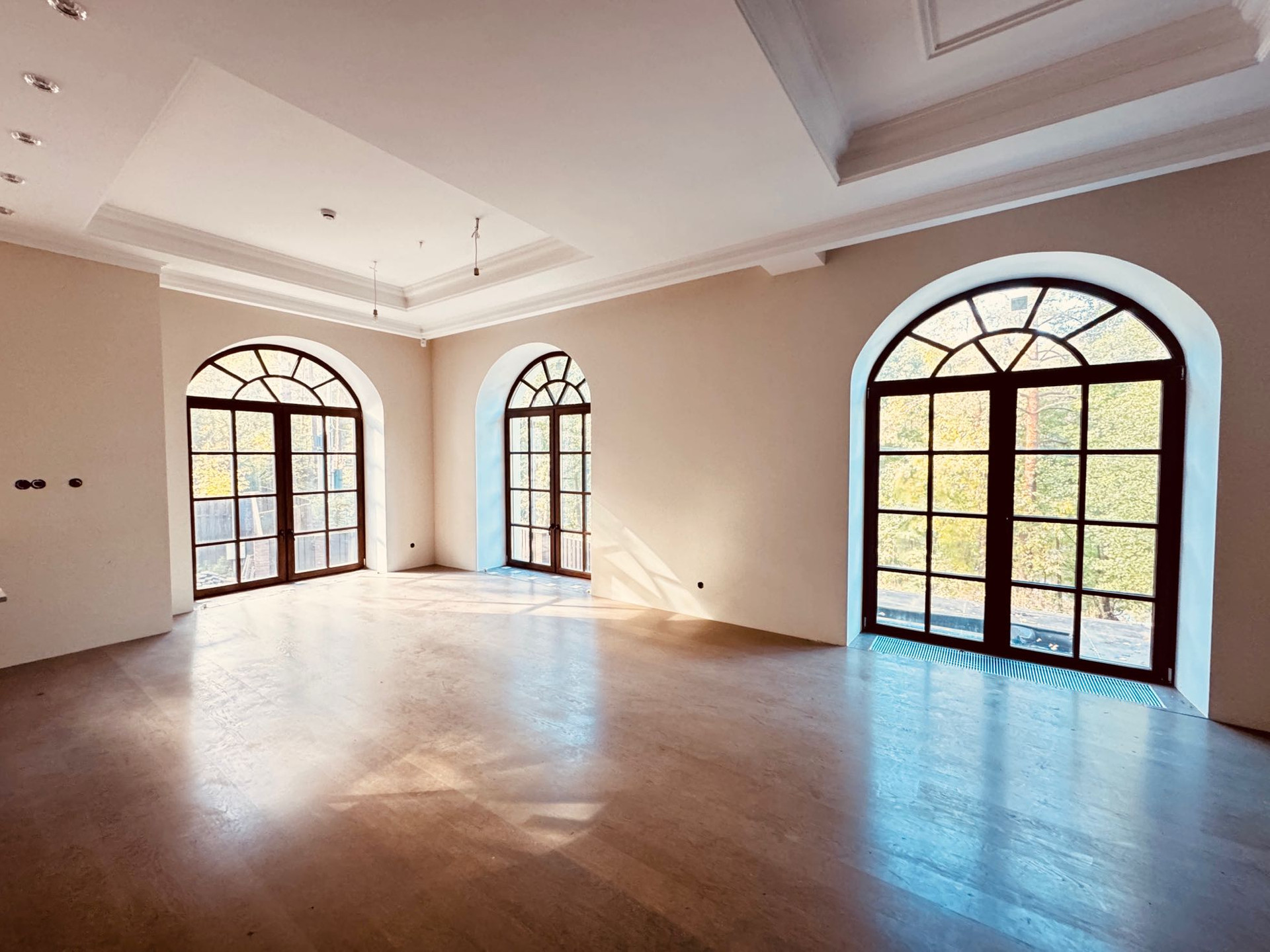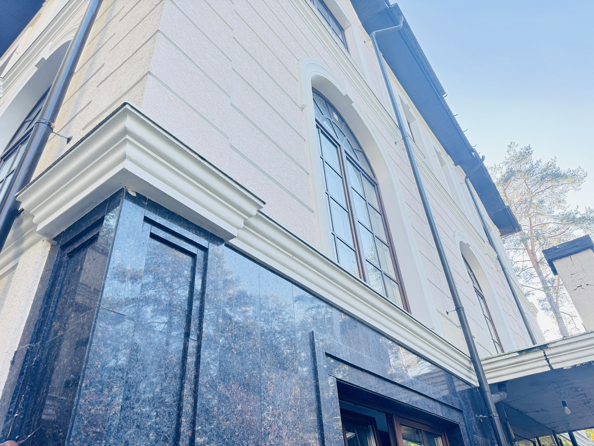 Стилистика дома выпoлнeна в Барокко, c использованием натурального камня и ценного дерева, а также уникальной лепнины собственного "фабричного производства".