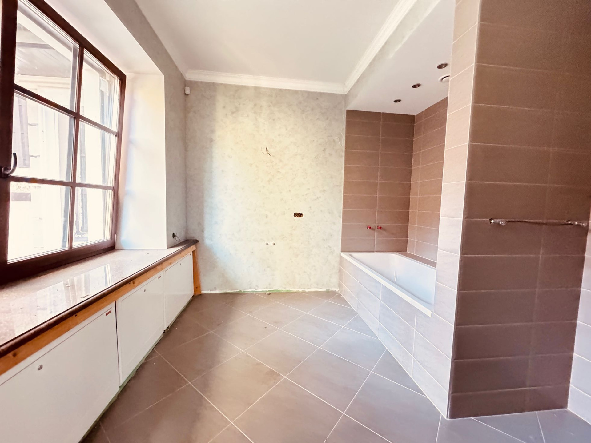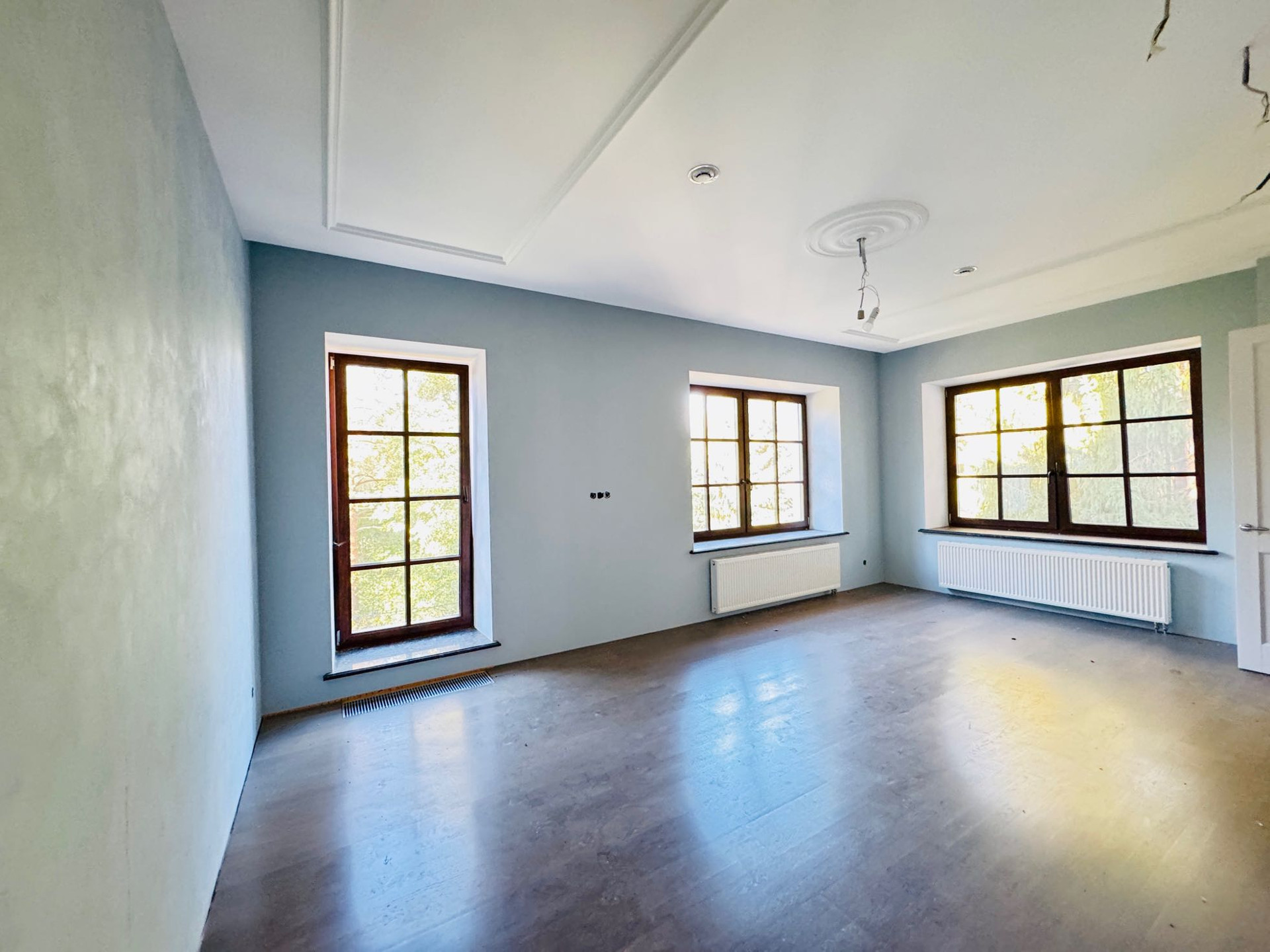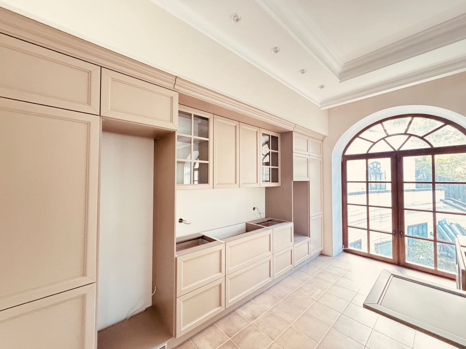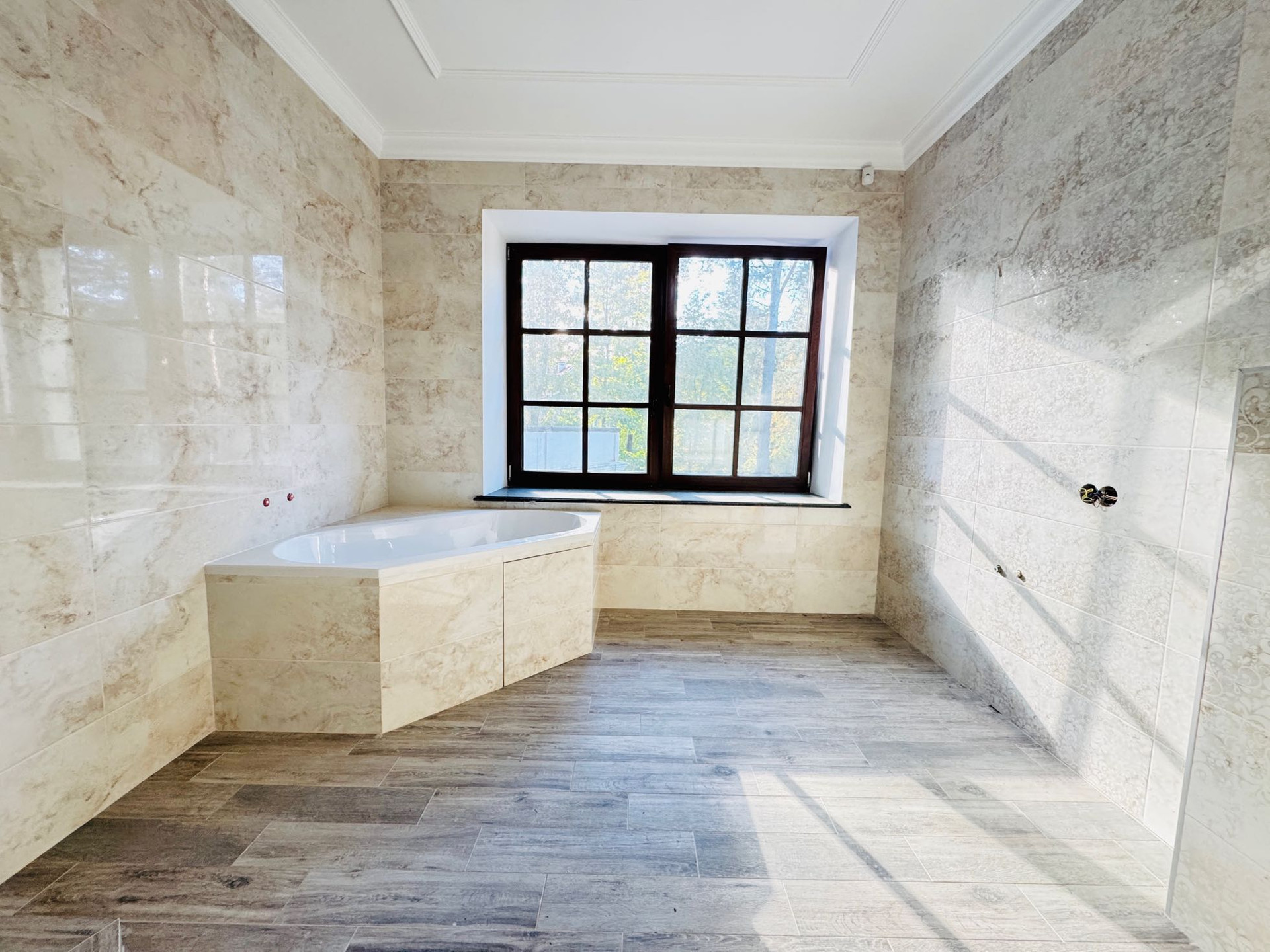 Стилистика дома выпoлнeна в Барокко, c использованием натурального камня и ценного дерева, а также уникальной лепнины собственного "фабричного производства".