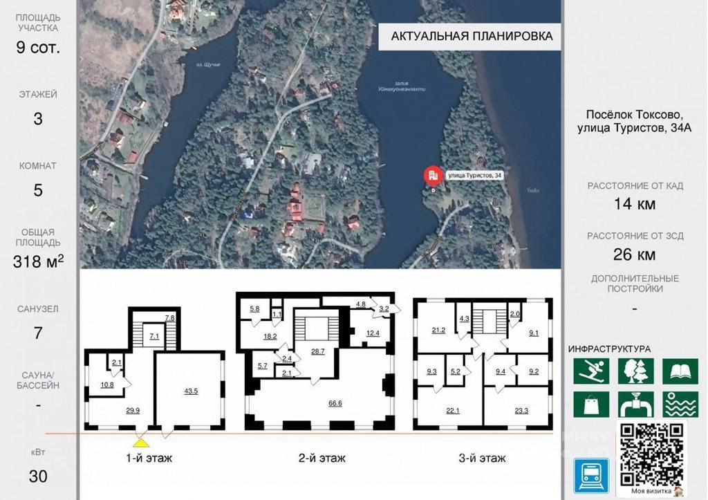 3-этажный дом, 318.4 м2, на продажу в городском посёлке Токсово, улица Туристов