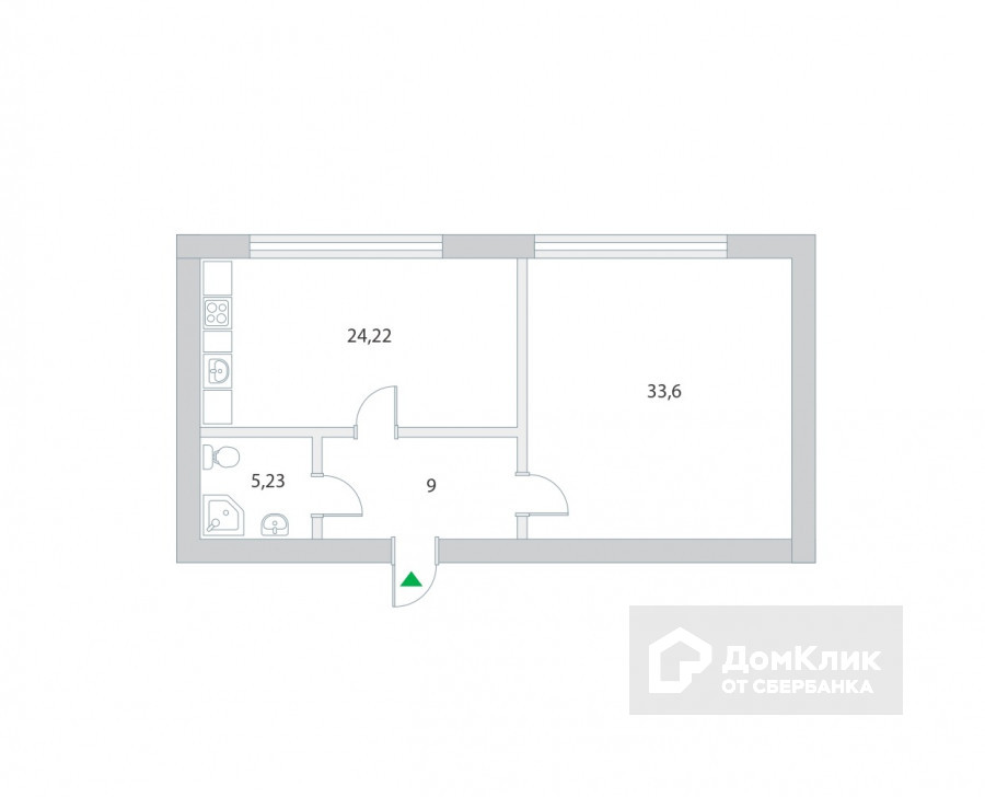 Жилая площадь 33.6 м2