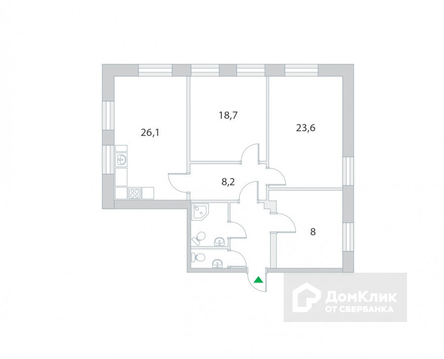 Площадь кухни 26.1 м2