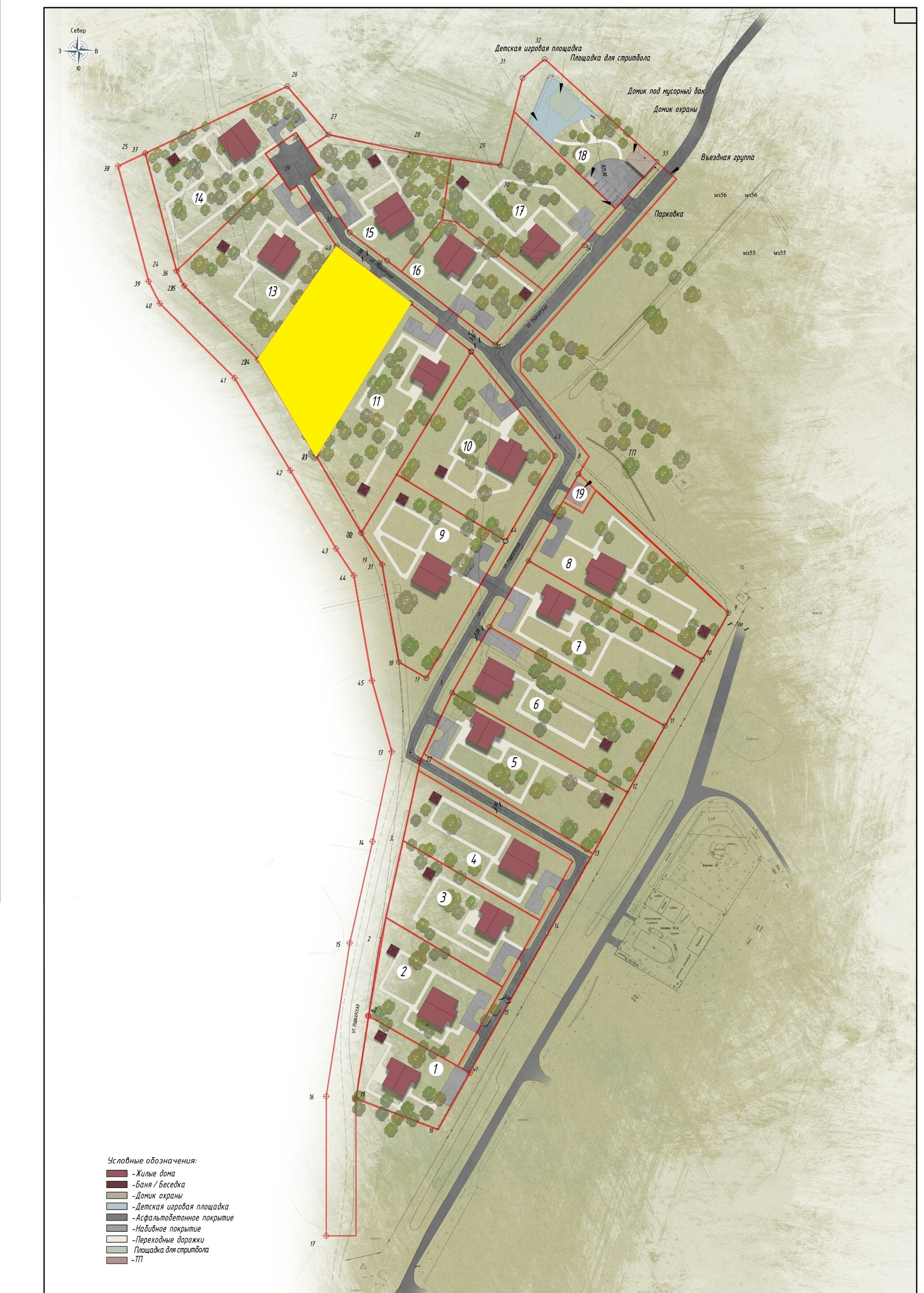 Инженерные коммуникации подведены к границе участка. По территории поселка проложены дороги и уличное освещение.
