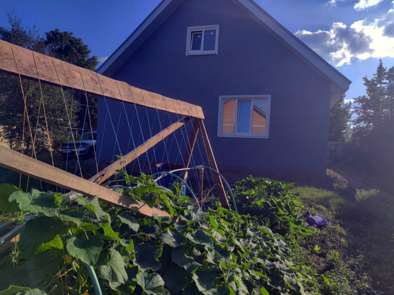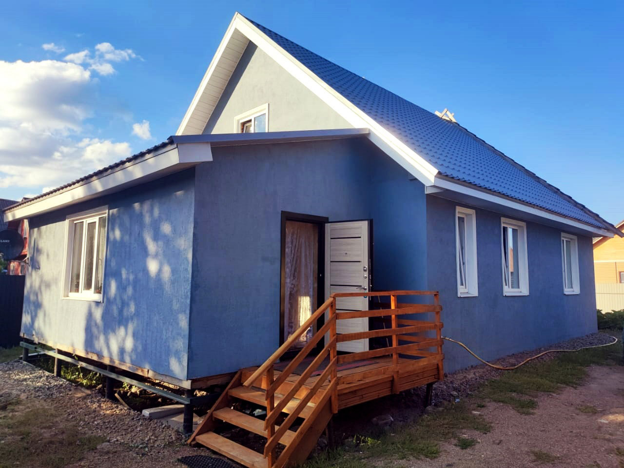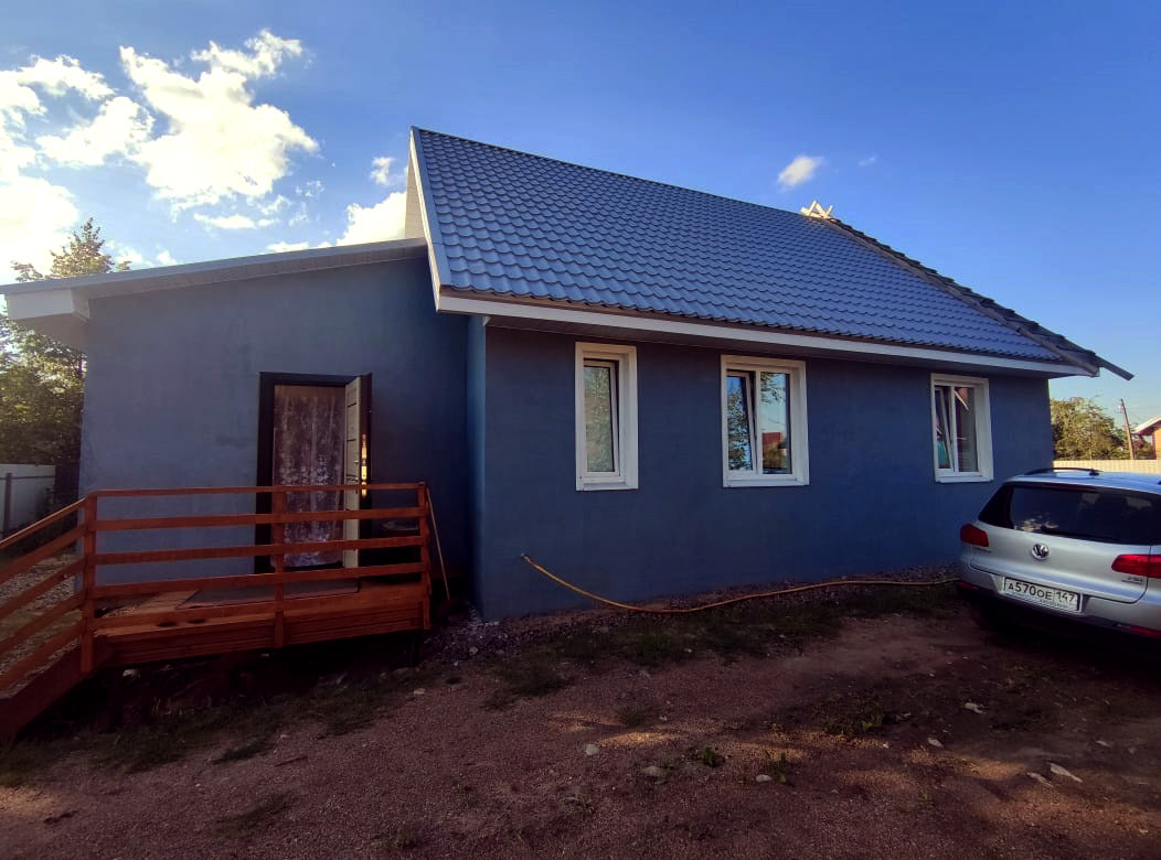 Дом из 400-го газобетона, фундамент  монолитная плита, окна стеклопластик, снаружи отштукатурен.