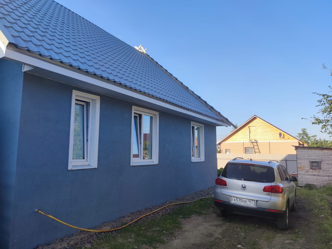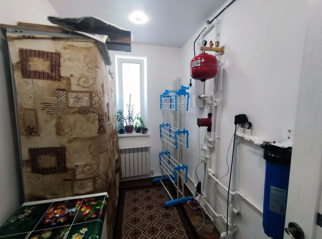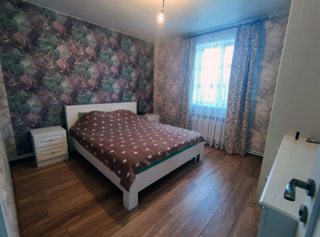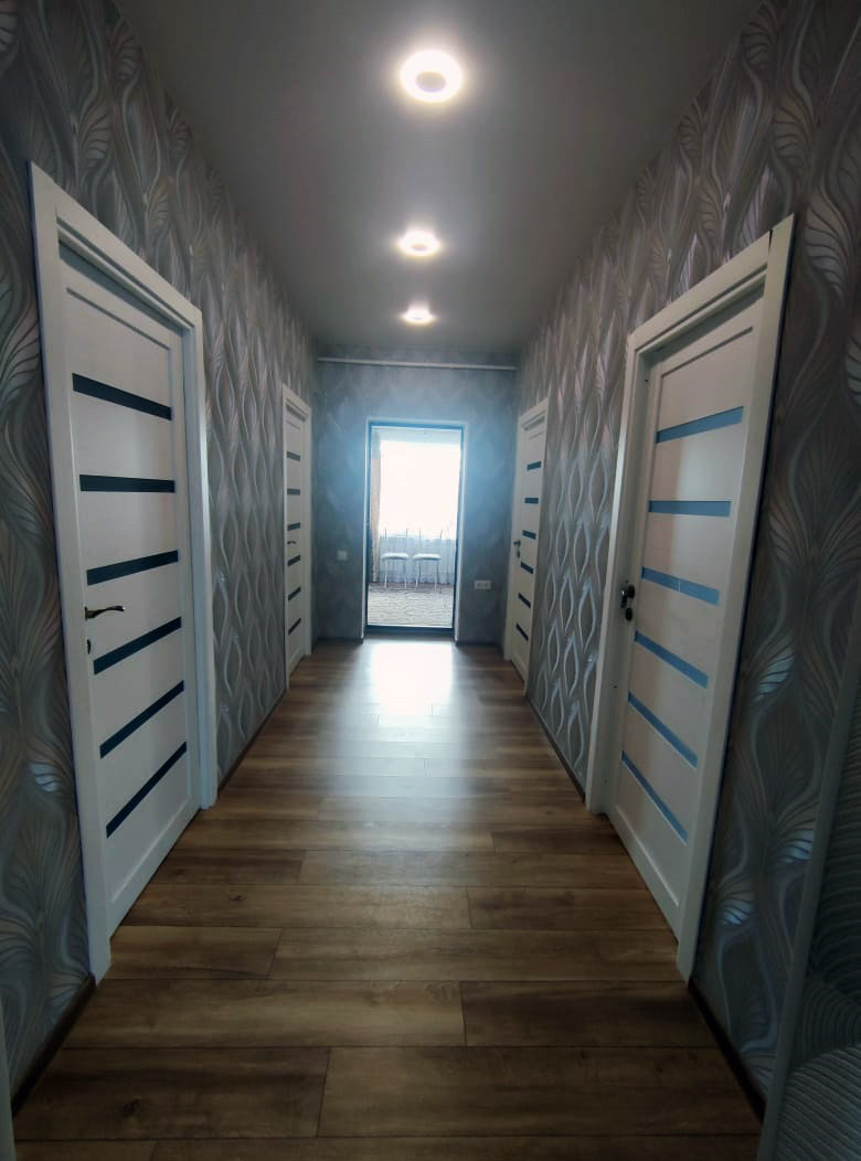 В доме на первом этаже 100м2 полностью с отделкой: три спальни, гостинная, кухня-столовая, с/у.