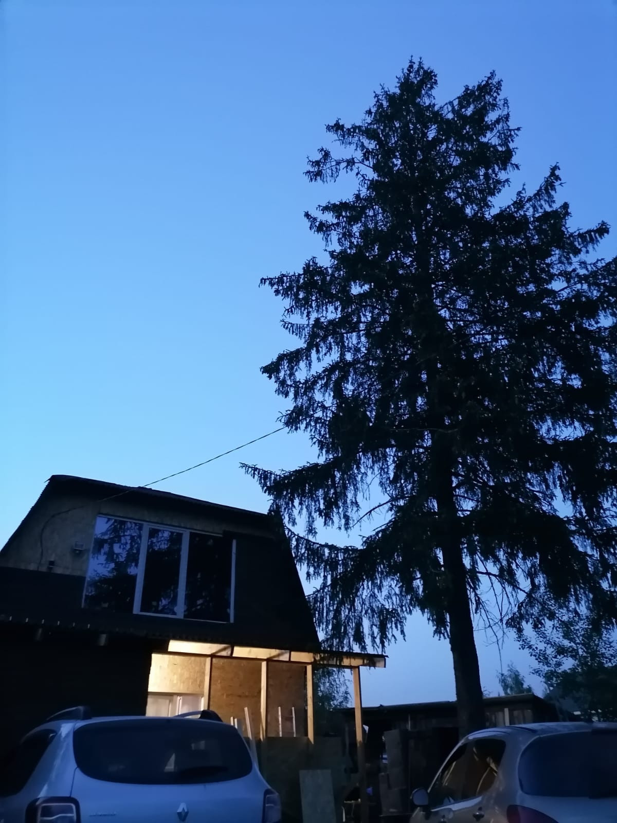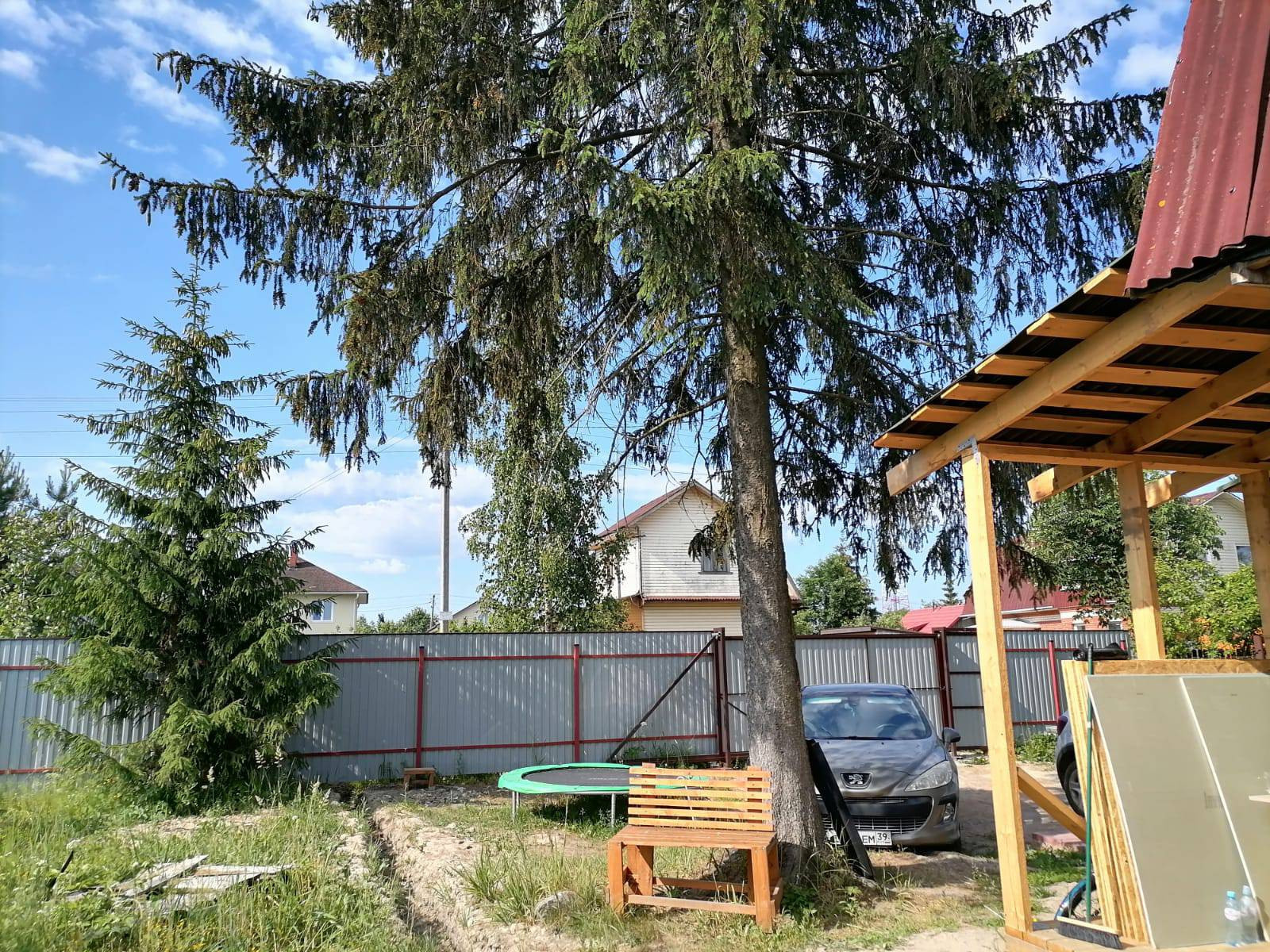 На участке две великолепные хвои, которые создают атмосферность даже в дождливую погоду.