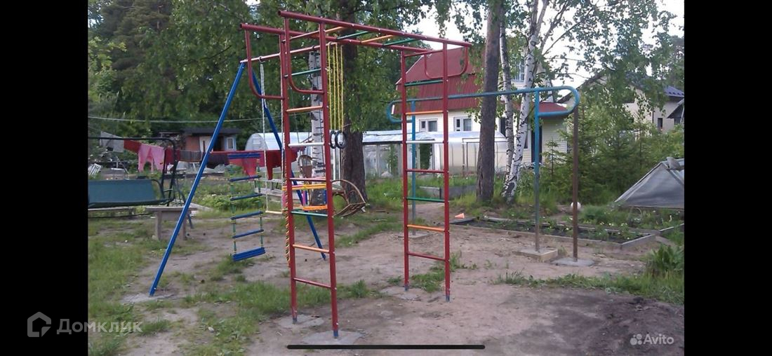 На участке 3 дома, есть детский спортивный комплекс, 1 парковочное место.