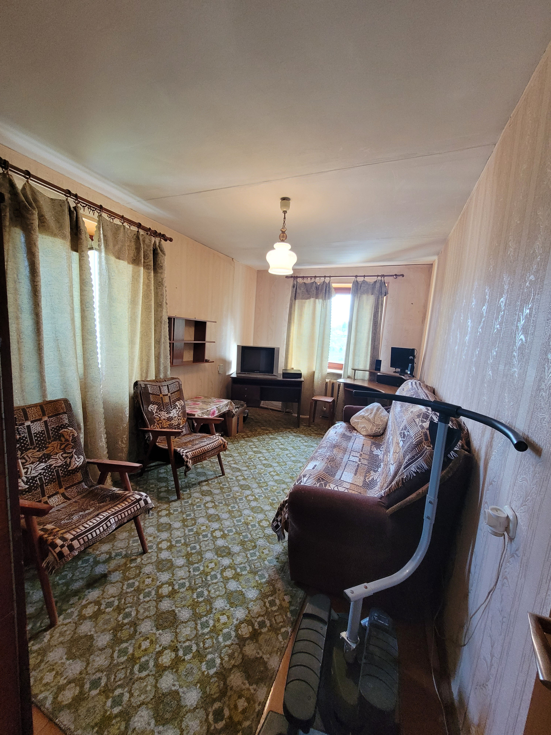 Отличная 2-комнатная квартира в благоустроенном поселке в 2 х километрах от черты города. Изолированные комнаты правильной формы 15,7 и 14,5 кв метров., в комнатах стоят дубовые стеклопакеты. Просторная кухня-7,6 кв. м с выходом на застекленную лоджию, просторный коридор, раздельный санузел. Состояние среднее, чисто. В квартире остается почти вся мебель, бойлер, микроволновка. Дом кирпичный, теплый, недавно сделан ремонт фасада.
