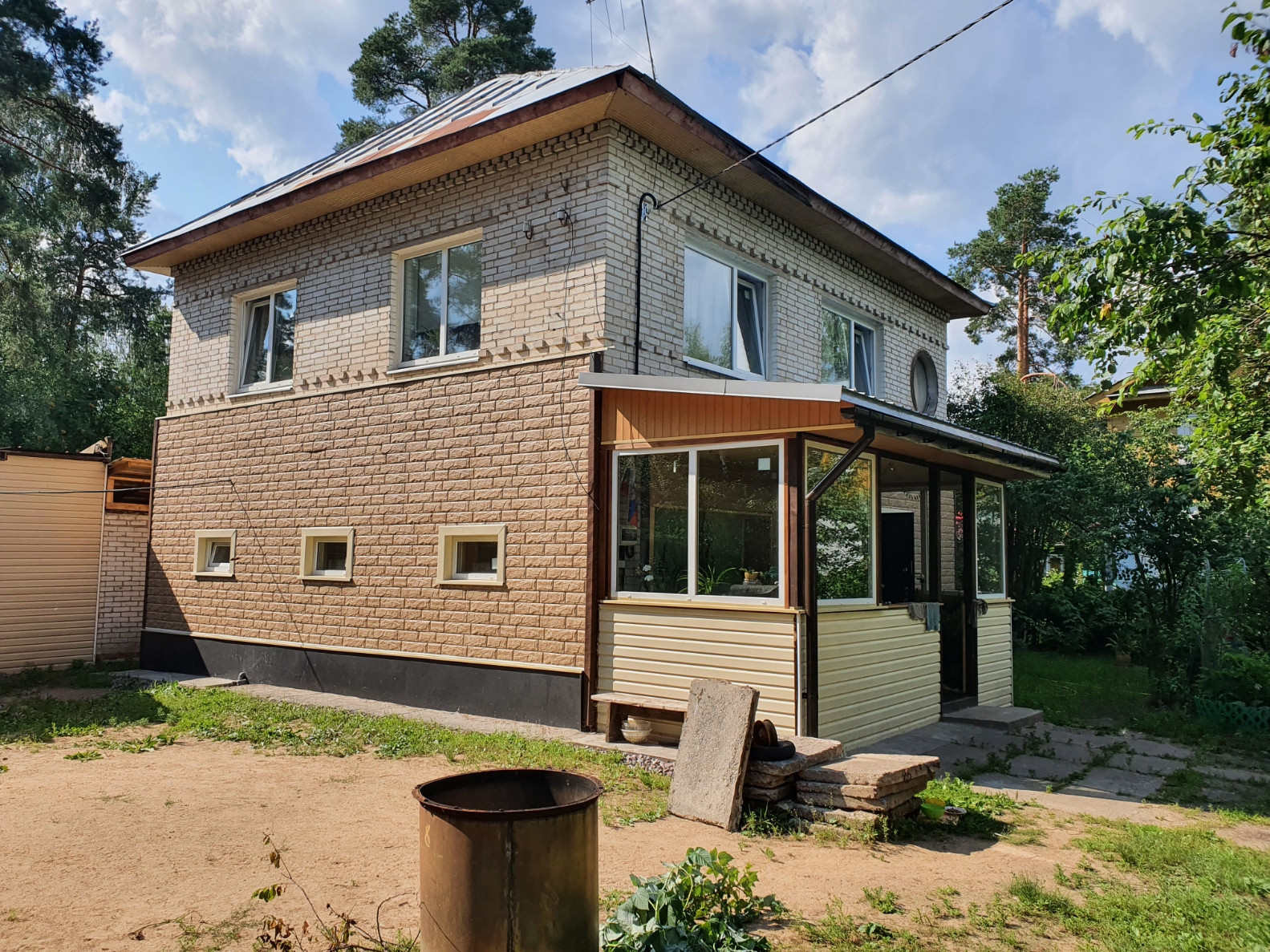 В центральном историческом районе Вырицы продается кирпичный двухэтажный дом на ухоженном участке. Здание кирпичное полностью с отделкой и подключенными коммуникациями. Удобная эргономичная планировка. На первом этаже просторный холл, кухня-столовая, спальня, совмещенный санузел, техническое помещение. На втором этаже две спальни, гостиная, кабинет и есть помещение под второй санузел. Дом расположен на участке с хорошим плодоносящим садом. На территории новая крытая парковка и кирпичный хозблок. Рядом в удобной доступности расположены рынок, вокзал, сетевые супермаркеты. До вокзала 700 метров, до пляжа 500 м
