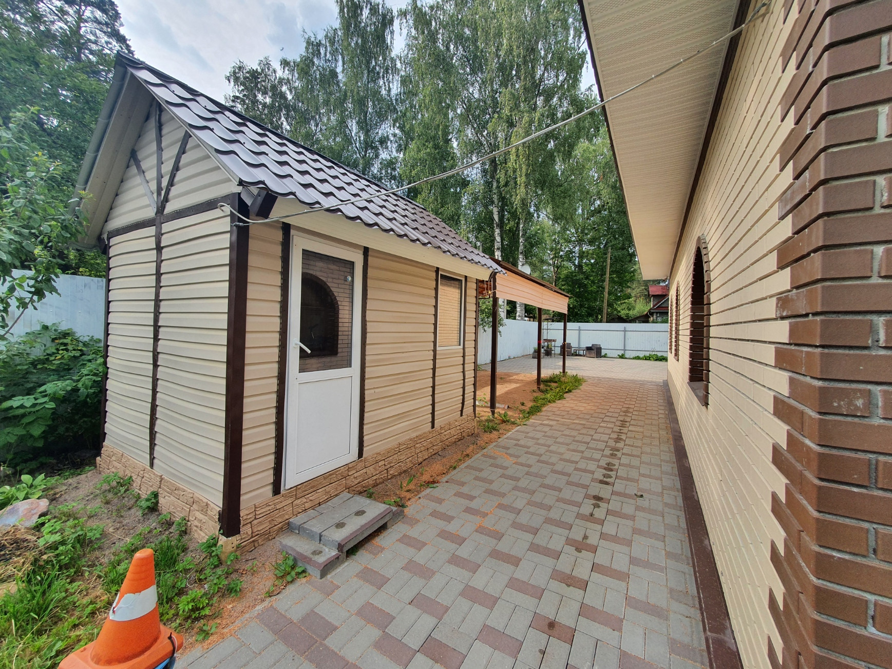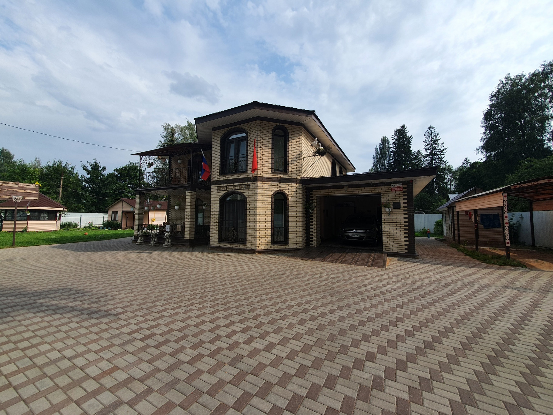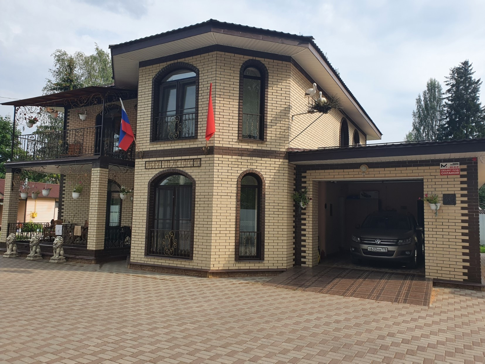 ! Эксклюзивное предложение. В центре Вырицы продается коттедж 243 кв.м .Возведен в 2019 году из качественных материалов. Выполнен из кирпича, толщина стен 500мм, облицовка клинкерный кирпич с утеплением. Панорамные стеклопакеты. Кованные детали выполнены на заказ. Дом полностью отделан, мебелирован и укоплектован качественной техникой. Удобная просторная планировка. На первом этаже расположены кухня-столовая с выходом на террасу, просторный холл, гостинная, спальня, просторная гардеробная комната, сан/узел, теплый гараж и техническое помещение. Теплые полы по всему первому этажу. Покрытие керамоплита. На втором этаже расположены большой холл, три спальни, кабинет, библиотека. Дом подключен к газу, выведена локальная канализация с автоматической системой очистки. Электричество 15 квт. Отдельного внимания заслуживает участок с идеальным газоном и плиточным покрытием большой парковочной зоны. На территории расположен гостевой дом из профилированного бруса 150х150 с автономным подключением к газу, скважиной и автономной канализацией. В доме большая гостиная, сауна, санузел с техническим узлом. Так же на участке уютная беседка с гибким остеклением, теплый хозблок для садовой техники и инвентаря, крытая парковка. Выполнены ландшафтные работы. Участок огорожен по всему периметру и оснащен воротами с откатным механизмом. Территория находиться под охраной, оснащена видеонаблюдением и тревожной кнопкой. К дому сделан хороший асфальтированный подъезд. В пяти минутах пешком находиться вся инфраструктура Вырицы, сетевые супермаркеты, кафе. Рядом школа, детский сад. До Санкт-Петербурга  бесперебойное транспортное сообщение. И конечно же знаменитые Храмы Вырицы и песчаные живописные пляжи реки Оредеж удивят вас своей самобытностью и красотой.