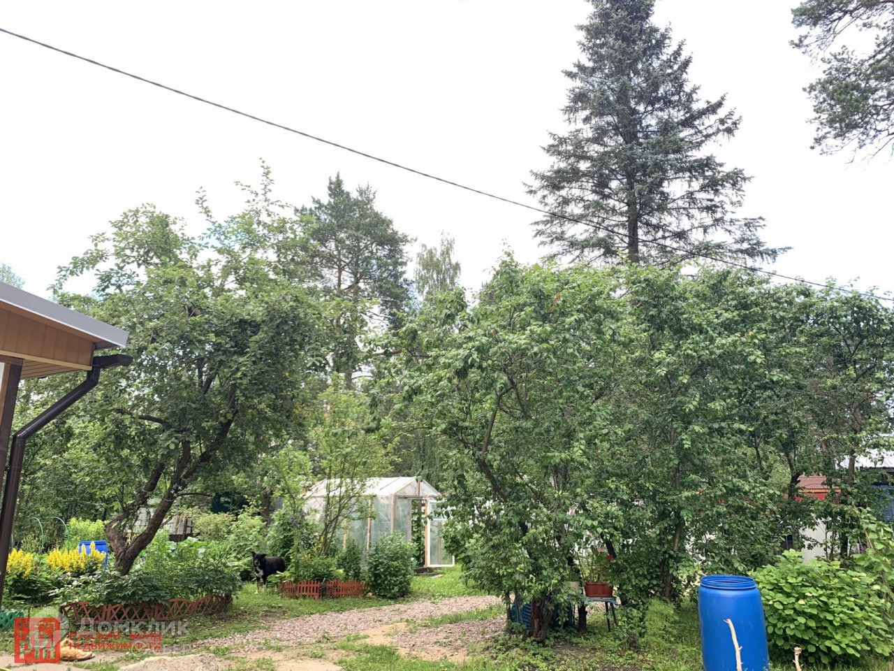 Участок 7,7 соток, границы определены по межеванию. Плодовые деревья и кусты, парник, навес под автомобиль.
