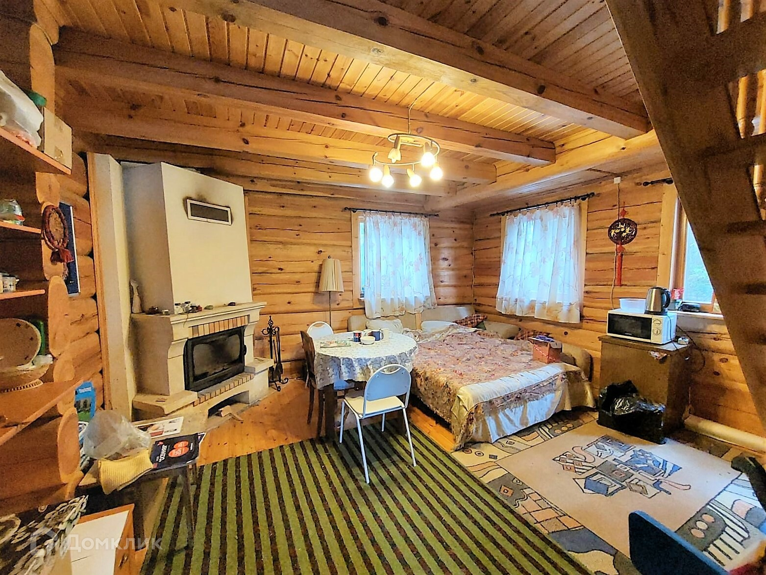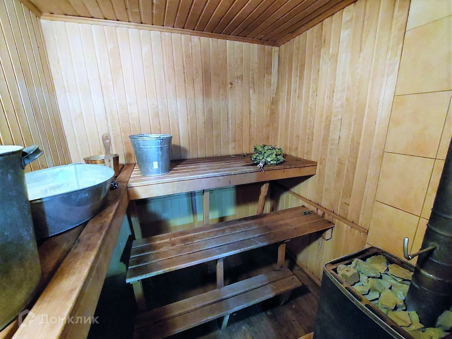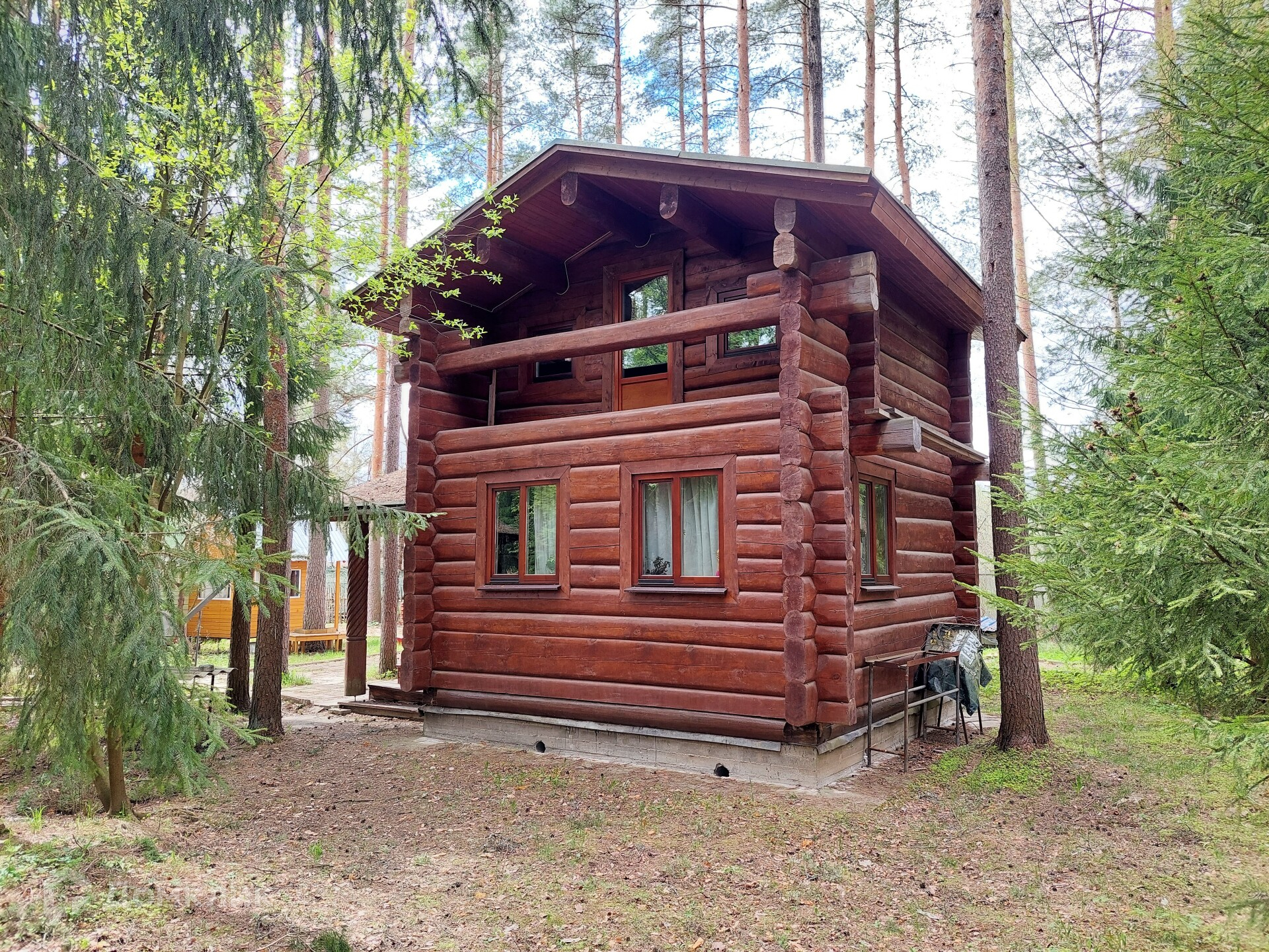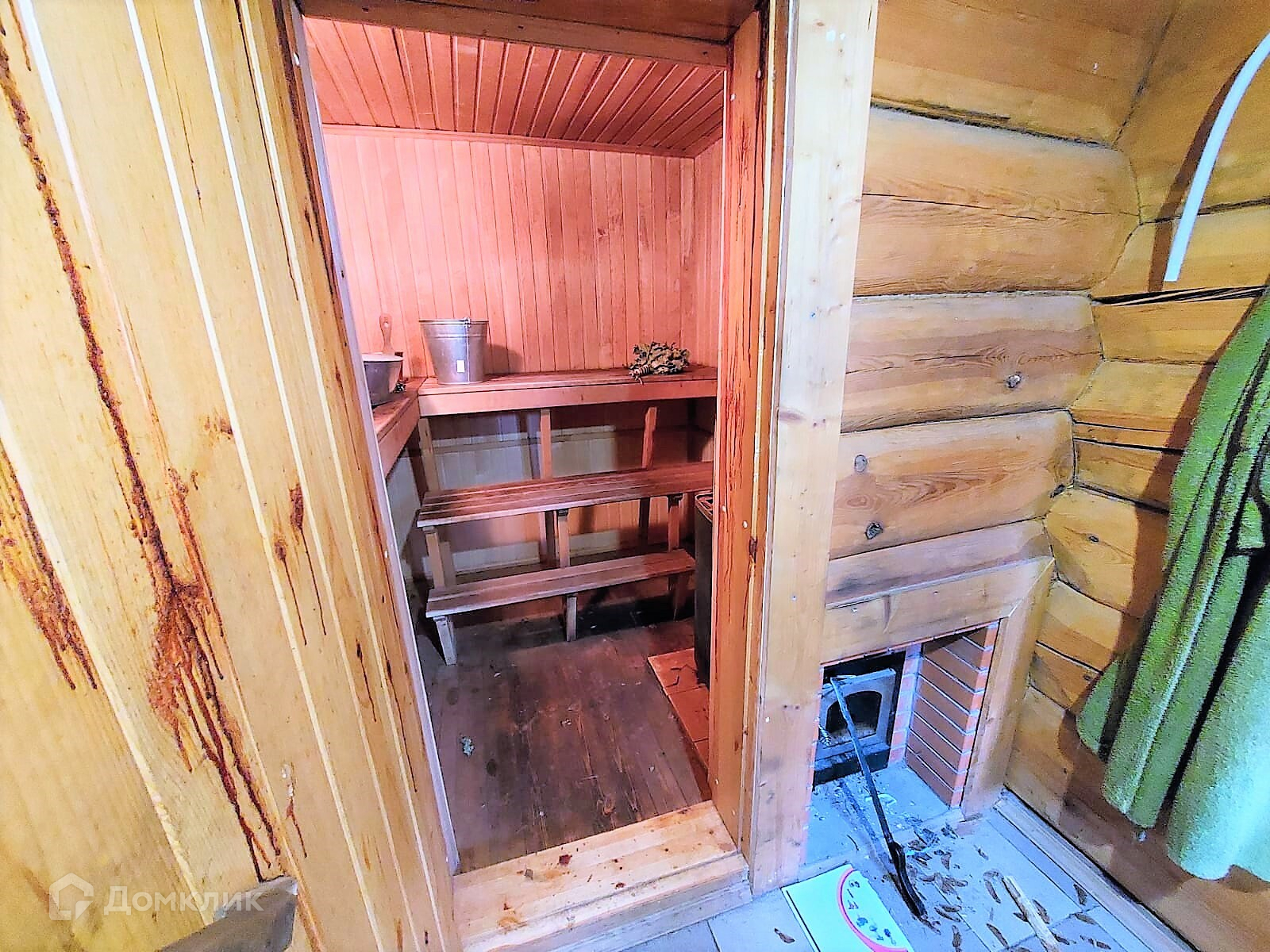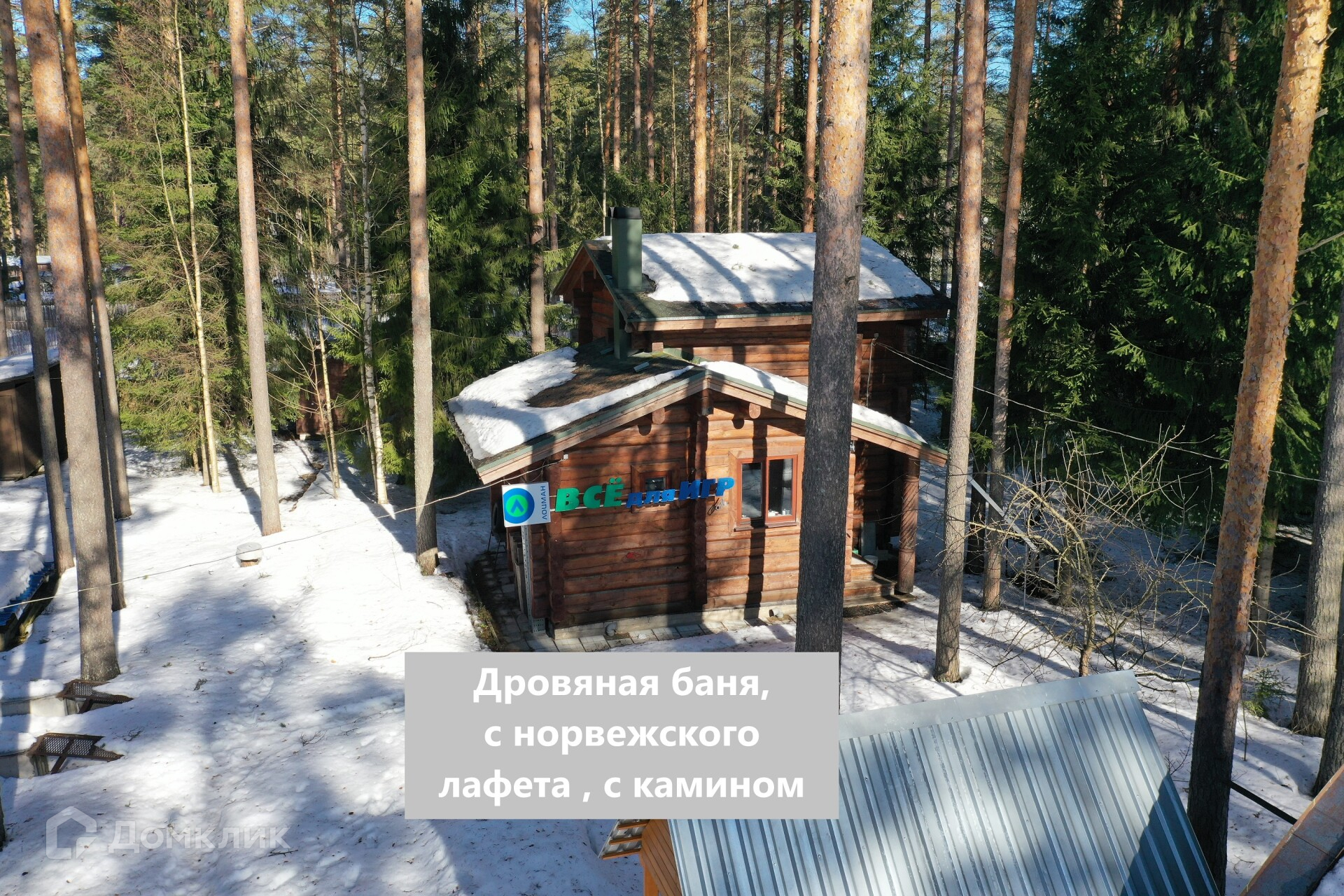 - Дом с сауной, из норвежского лафета (бревно, стесанное с двух сторон). в бане дровяная печь, в комнате камин, санузел в доме.
