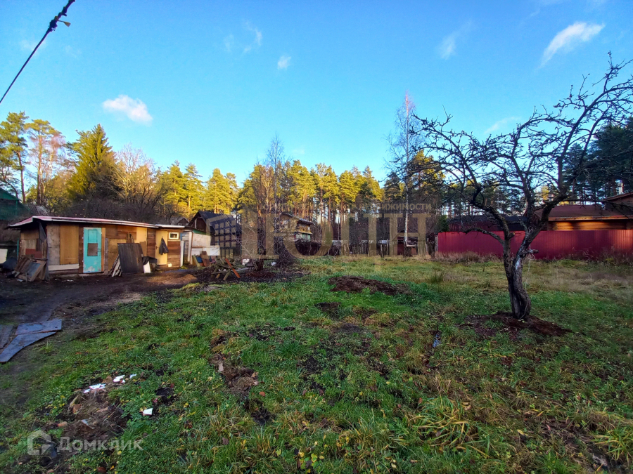 Участок со всех сторон огорожен металлическим забором, есть ворота для автотранспорта, сделан заезд на участок, правильная форма, сухой, растут яблони, красивая сосна и береза. Дом и все постройки находятся с краю, поэтому есть много места для строительства нового объекта.
