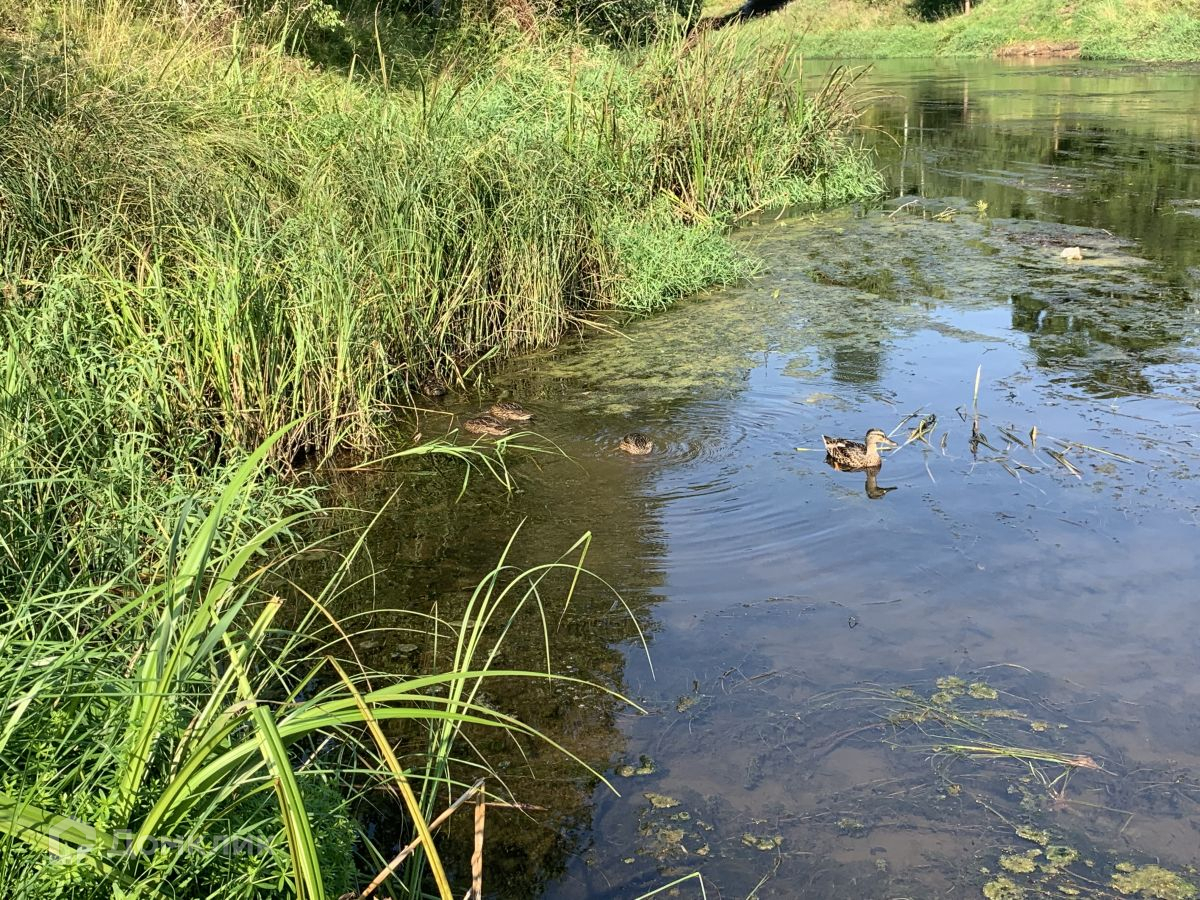 На участке плодовые деревья, а так же пожарный пруд .