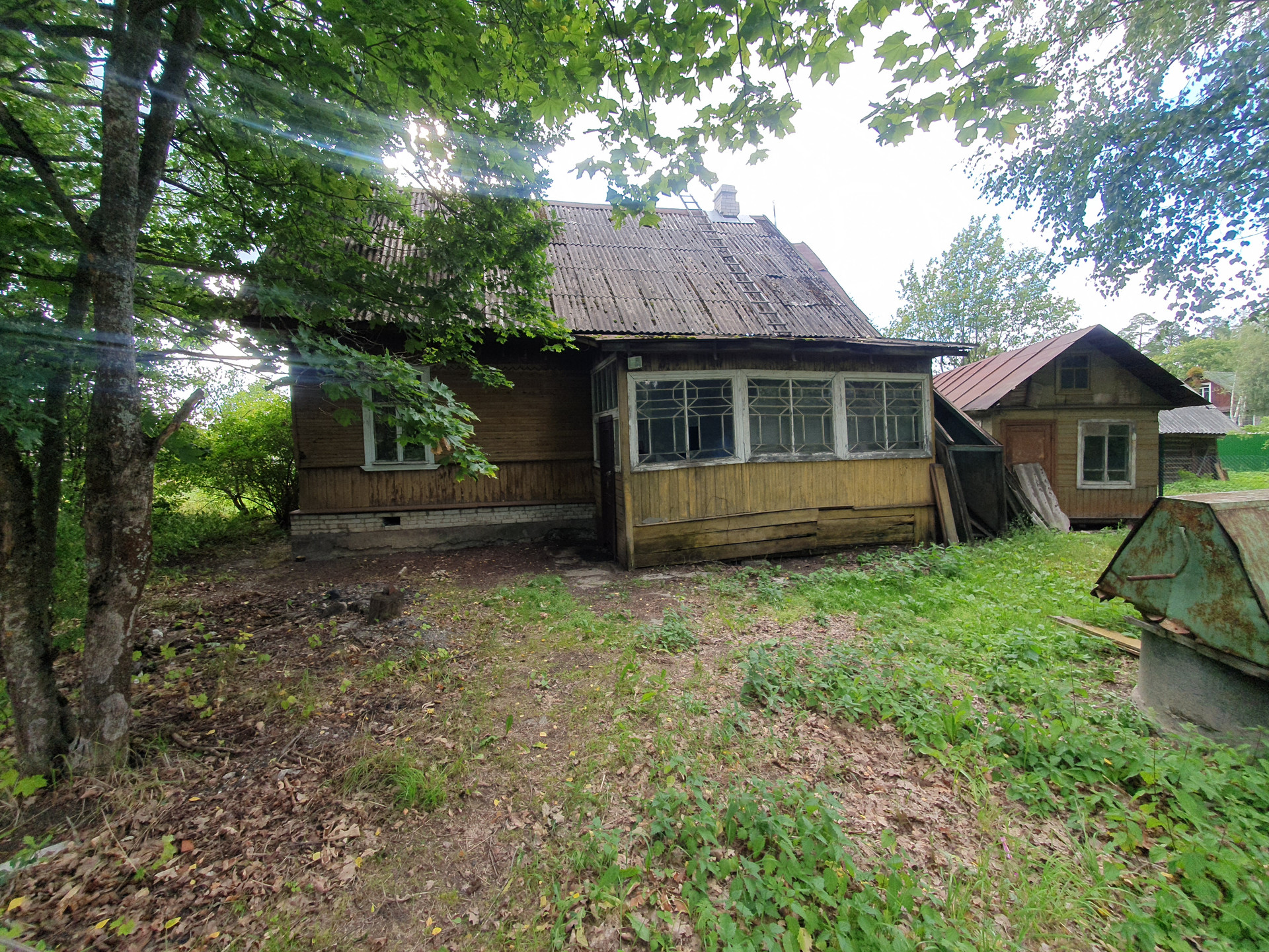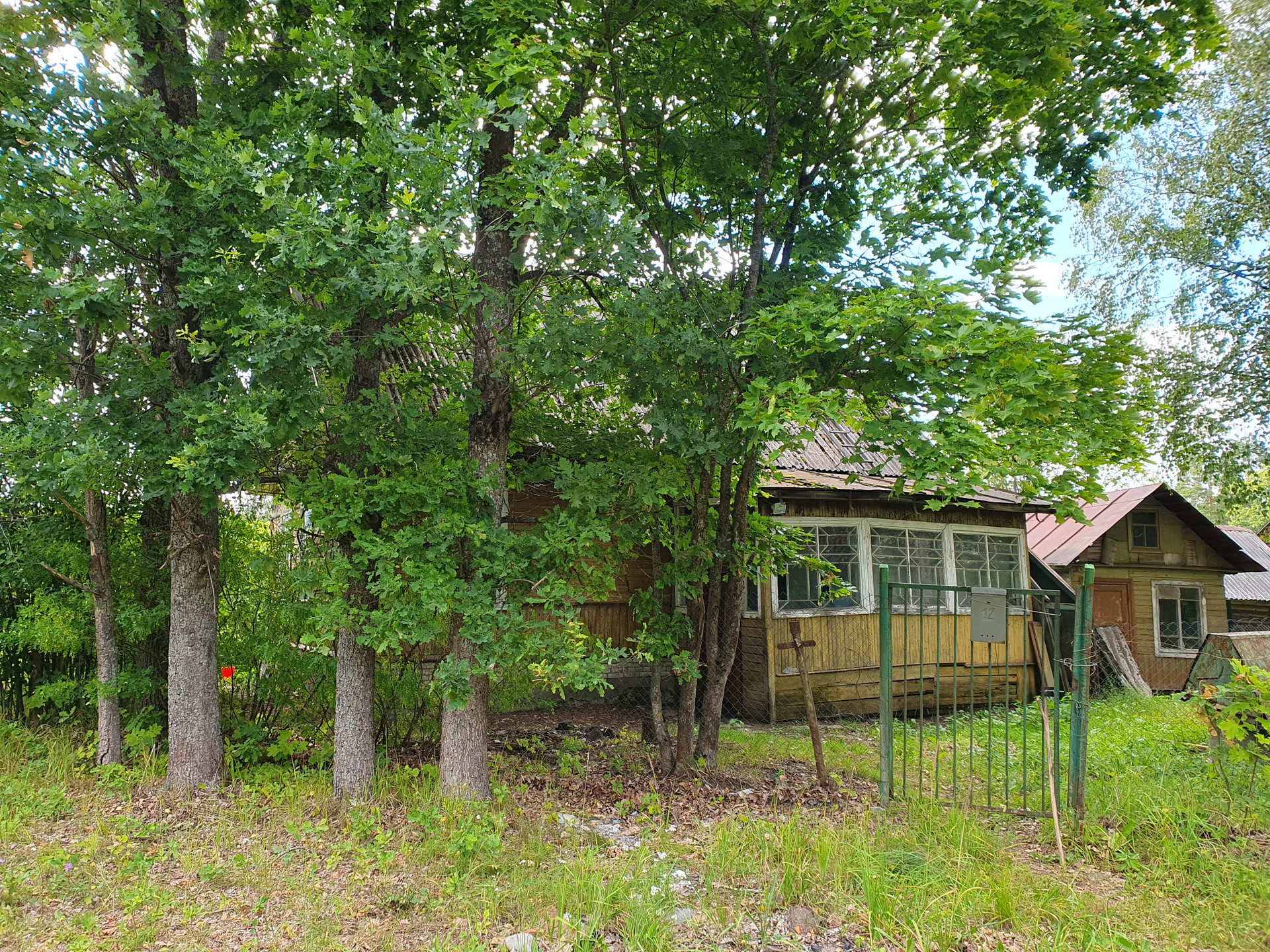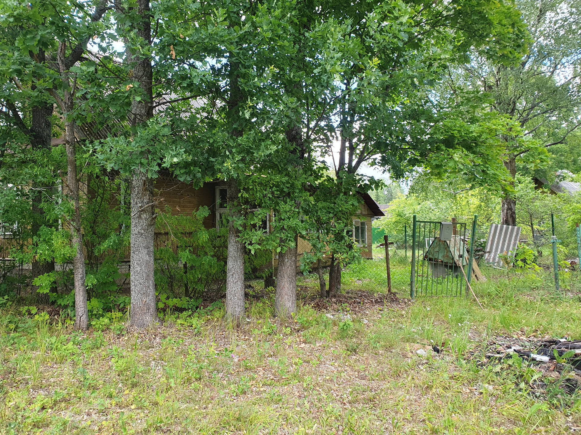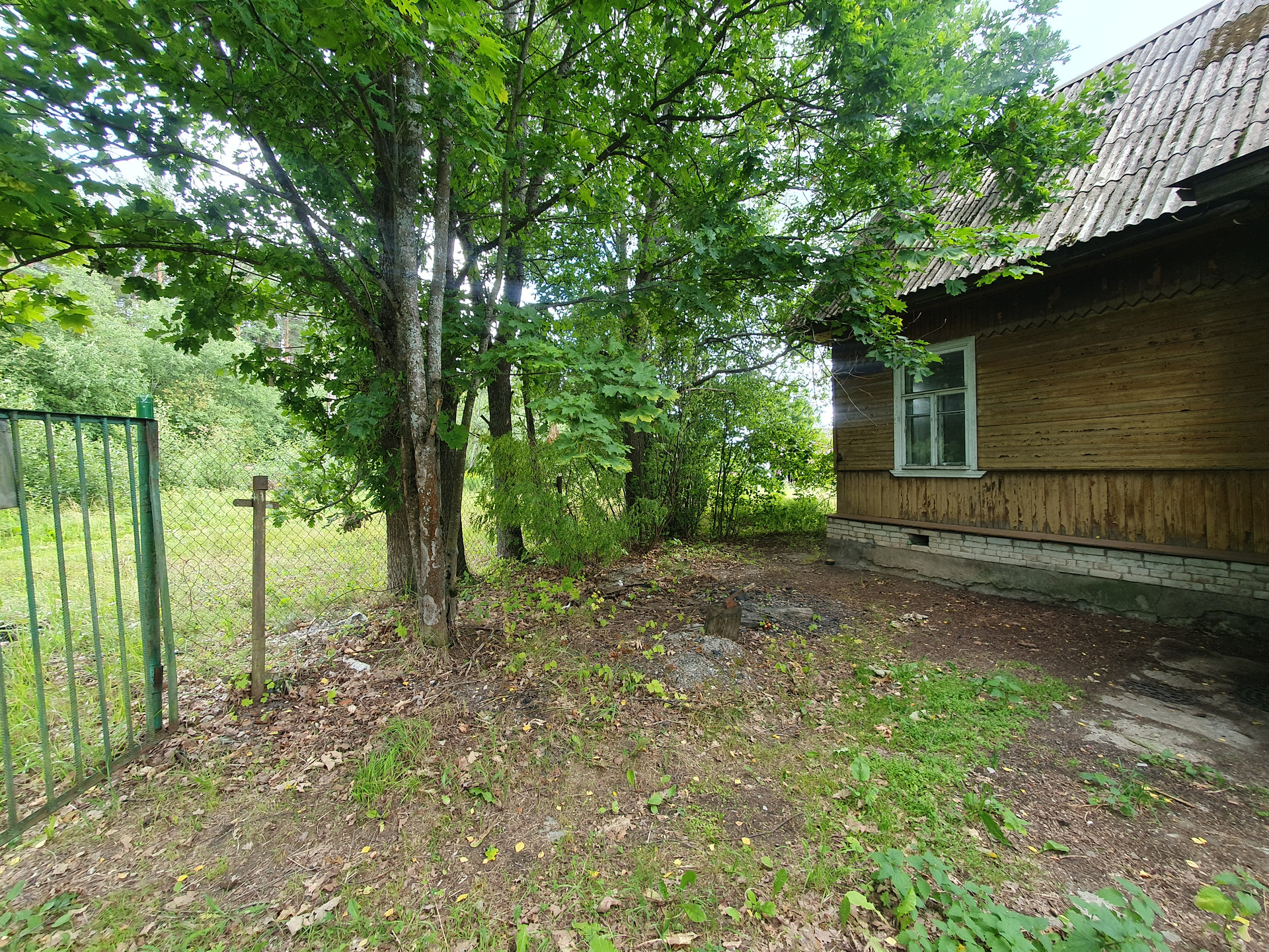 Продаётся участок с домом из крепкого бревна. Участок 12 соток, с плодовым садом, хорошим подъездом и добрыми соседями. Вода в колодце, электричество подведено.  Напротив лес. Место тихое, участок огорожен. Дом требует ремонта или может использоваться на время нового строительства.