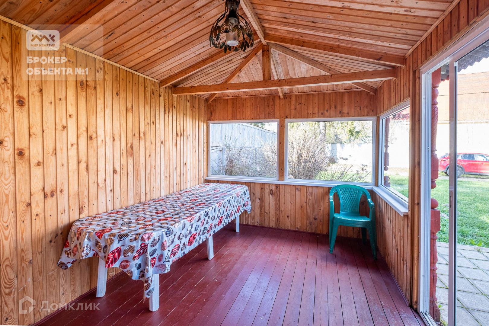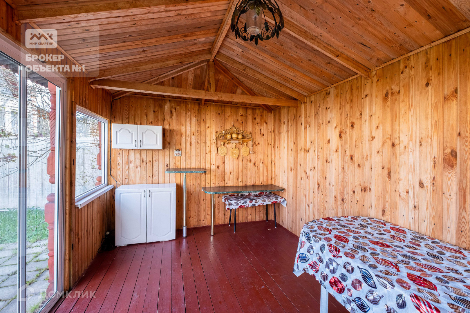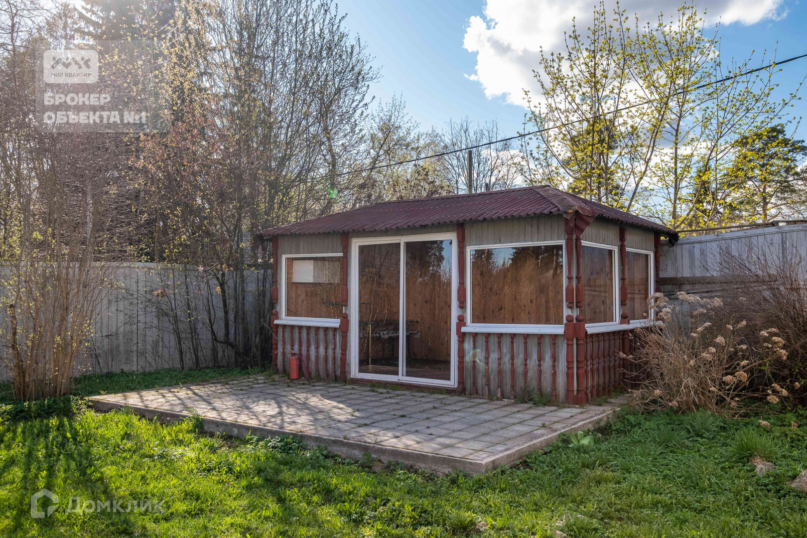 Имеется застекленная летняя беседка с мангалом.