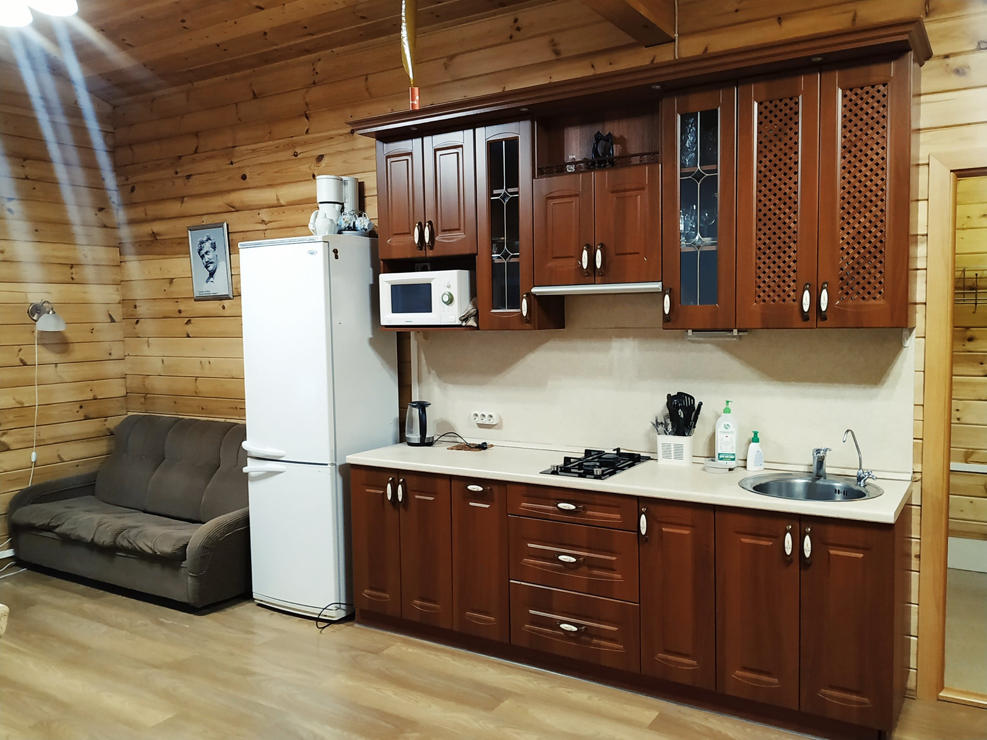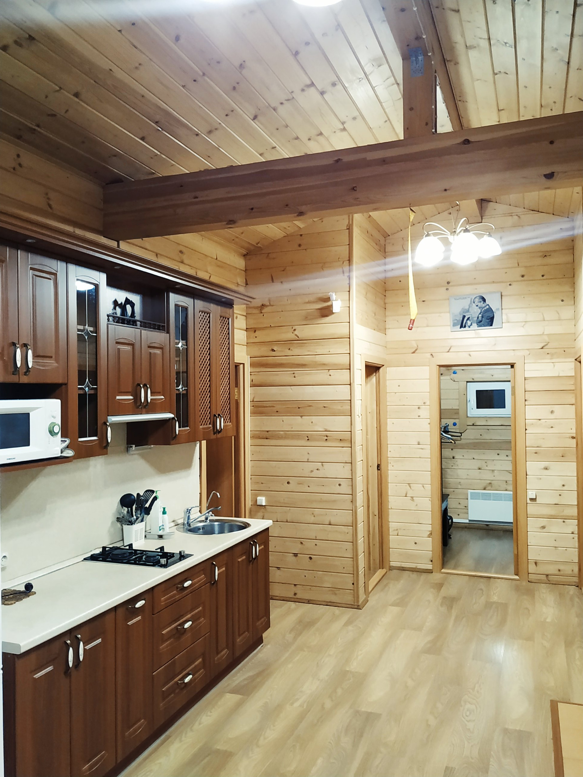 В доме: кухня- гостинная, 2е спальни, санузел , помещение под сауну.