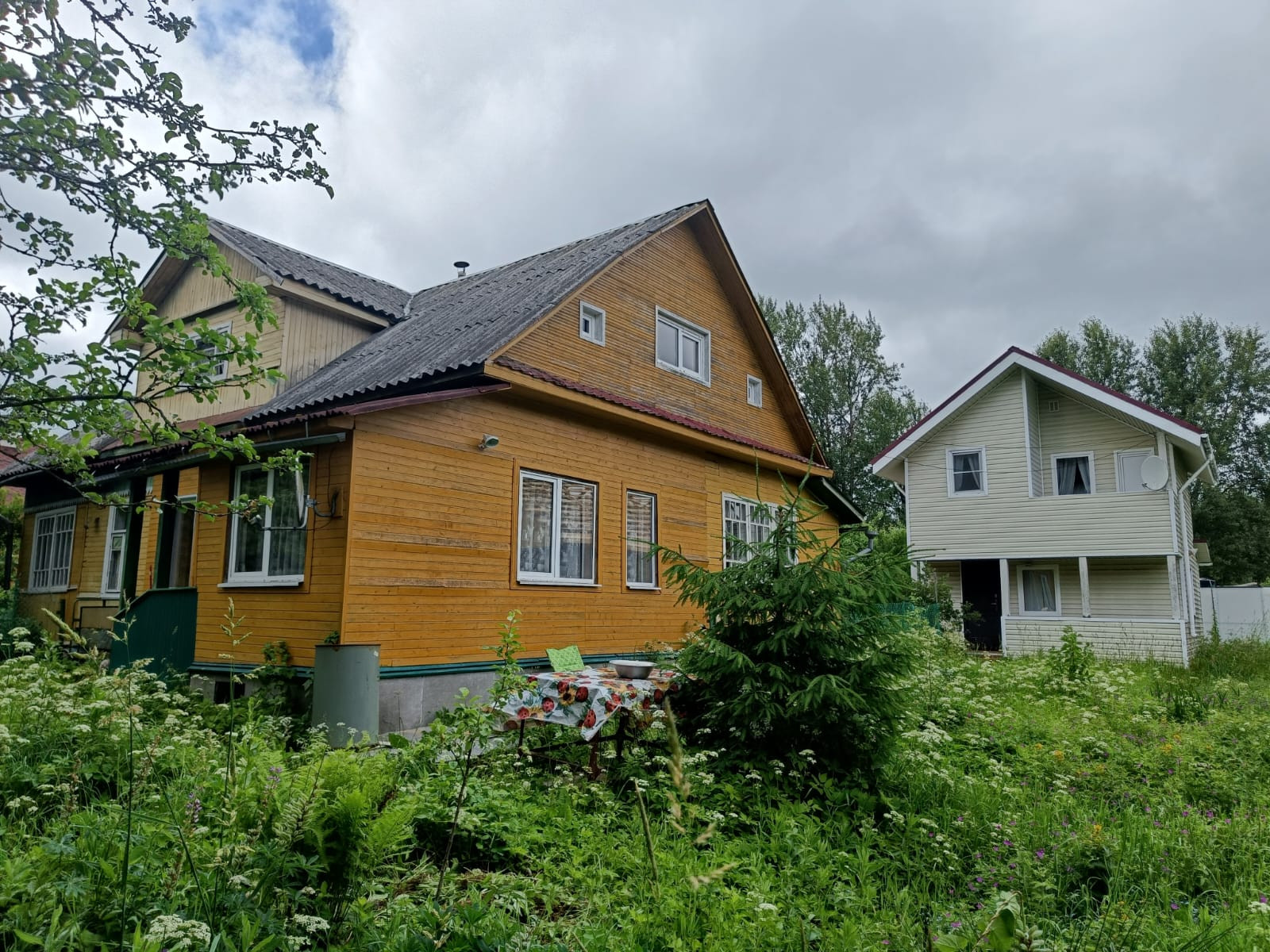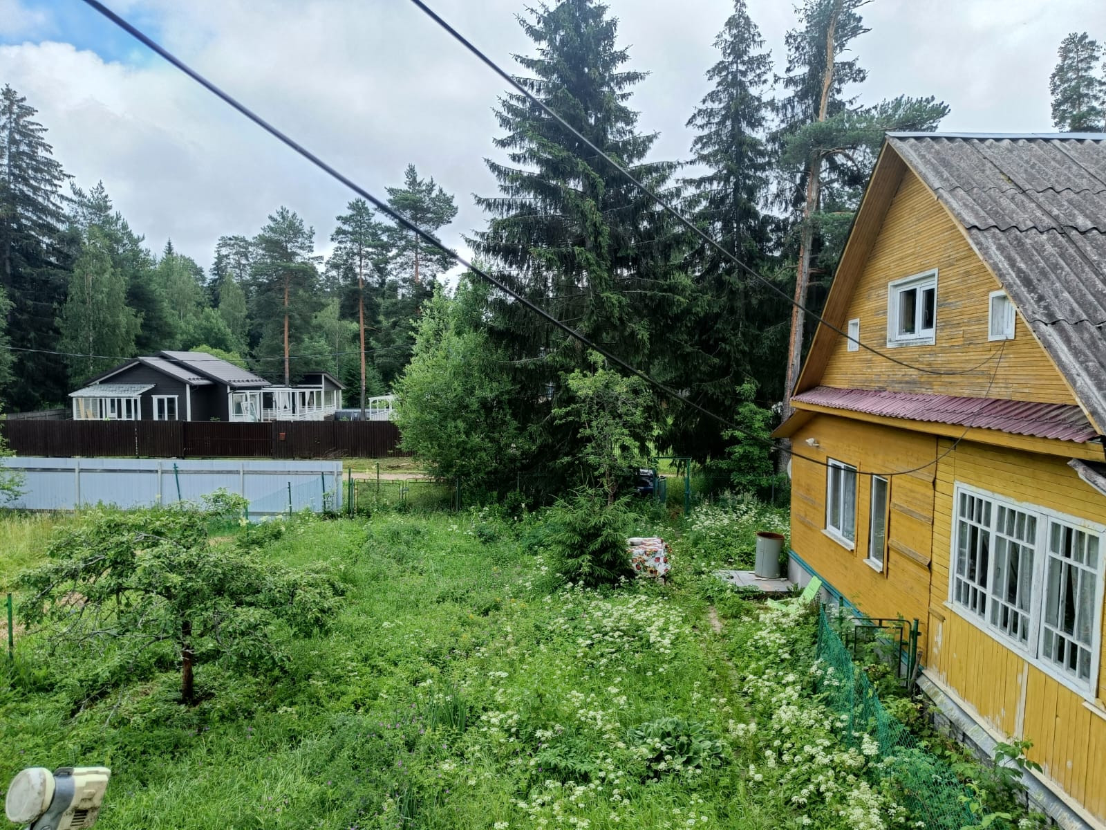 На тихой зеленой улице предлагаются в продажу два дома на участке 8 соток. Участок правильной формы, ровный, сухой с плодовыми деревьями. В жилом доме (доля в праве 1/4) две комнаты и кухня, отделка вагонкой. Гостевой дом обшит сайдингом имеет два этажа с балконом. Приятное окружение. Много сосен, хороший подъезд. Несмотря на то, что рядом лес, вся инфраструктура поселка в шаговой доступности.