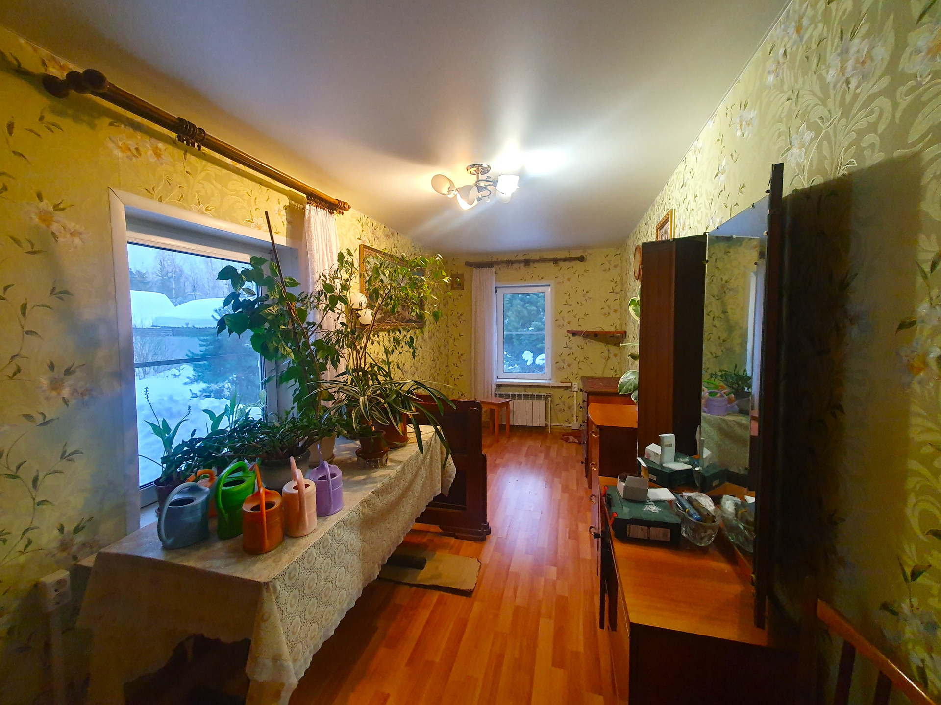 Крепкий зимний дом выполнен из бревна на ленточном фундаменте. Сделан ремонт. Подведены все коммуникации. В доме три комнаты, просторная кухня, санузел. Отопление газовый котел (центральный газ), Вода заведена в дом о скважины. Канализация-септик. Участок ухожен, растут плодовые деревья, вокруг сосны. На территории есть баня, хозяйственные постройки. В 10 минутах пешком расположены песчаные пляжи, Храм, рядом автобусная остановка. В 15 минутах ж/д станция.
