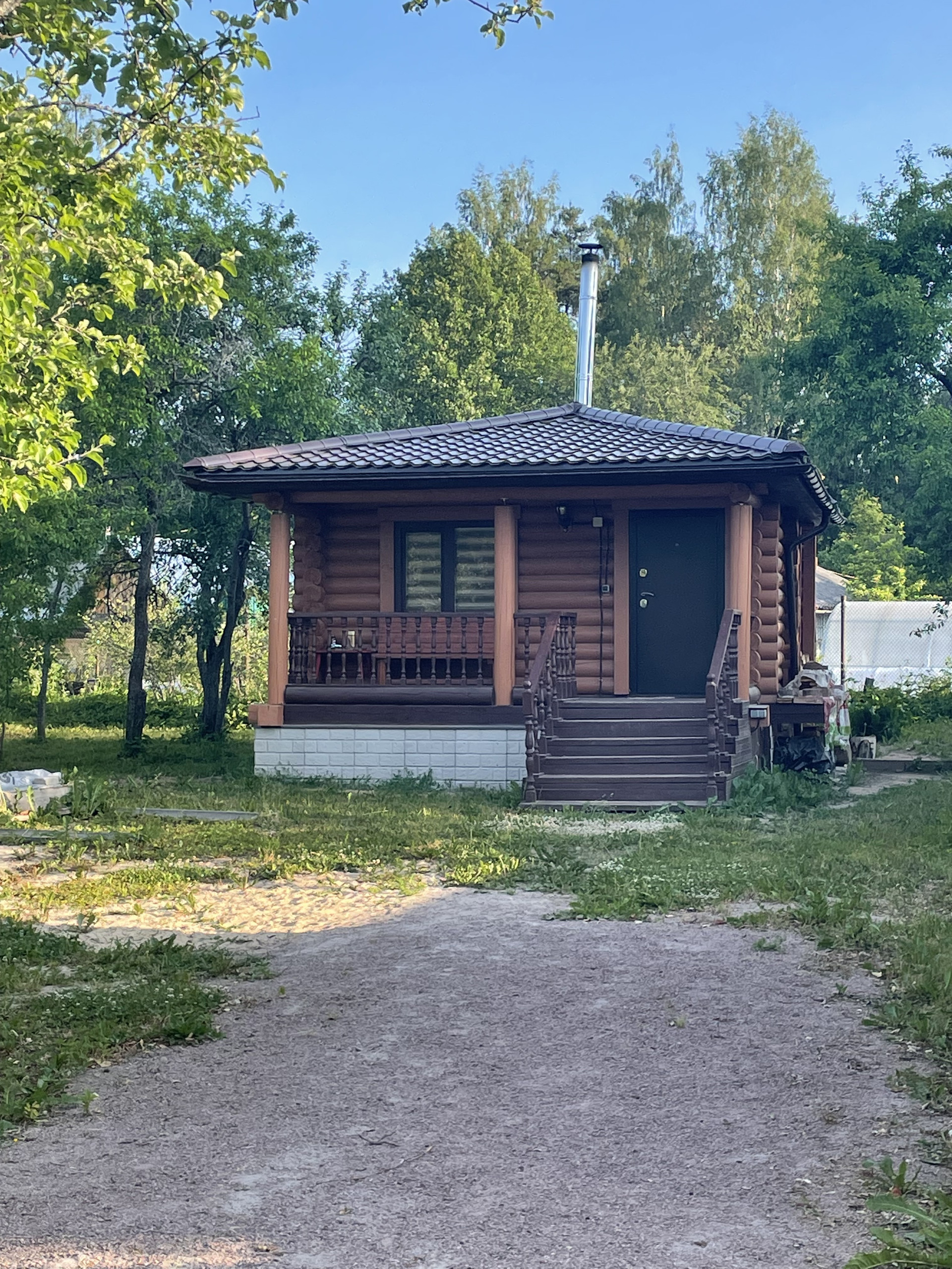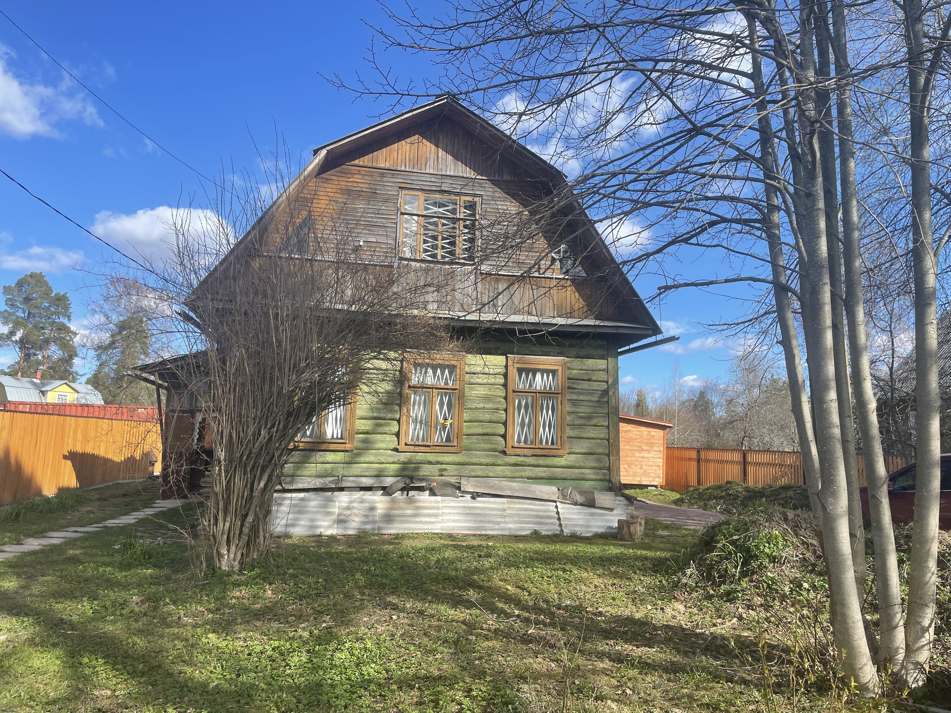 - Участок: по документам 11,45 соток, по факту: 15 соток. На участке нами сделана дорога от ворот до бани. Территория со всех сторон обнесена забором, есть сарай. Растут несколько яблонь, слив, малина и крыжовник. Колодец прямо на участке.