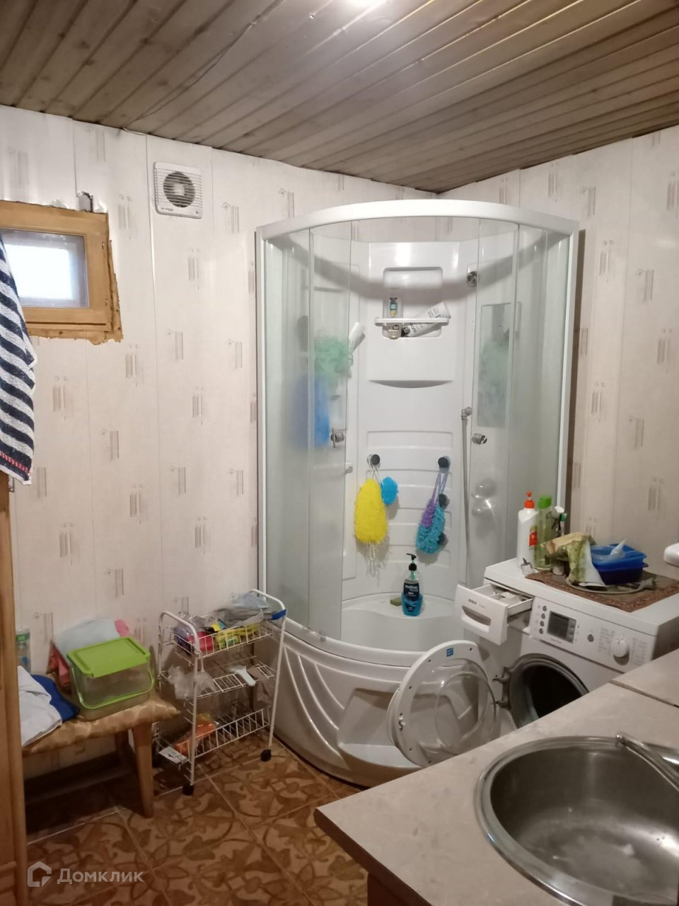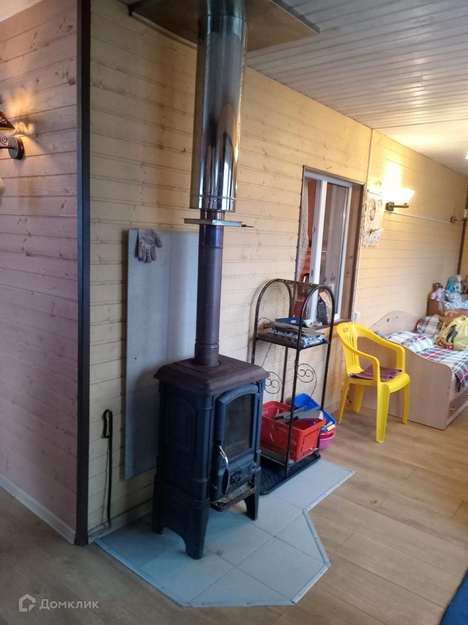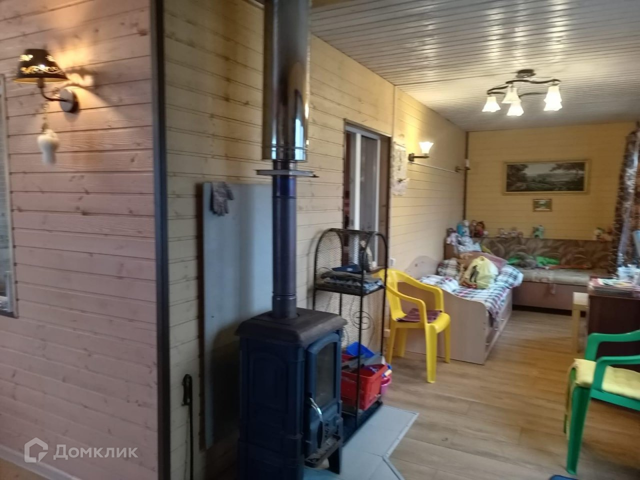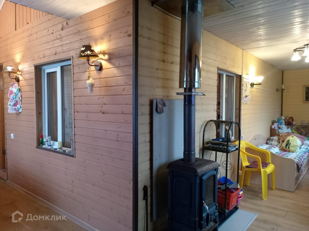 Дом общей площадью 55 кв.м сделан из бруса, крыша – металлочерепица, внутренняя отделка – вагонка. Печное отопление. Вода подведена в дом (есть бойлер).