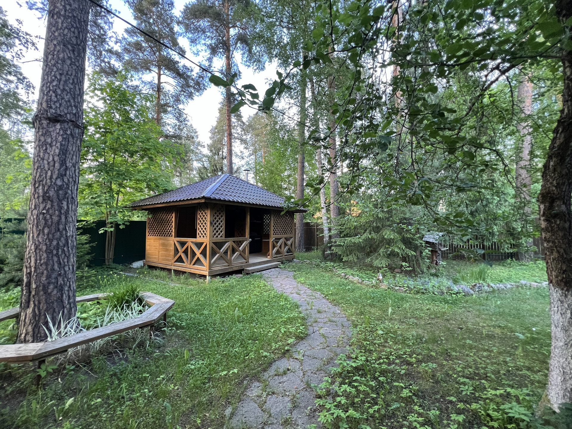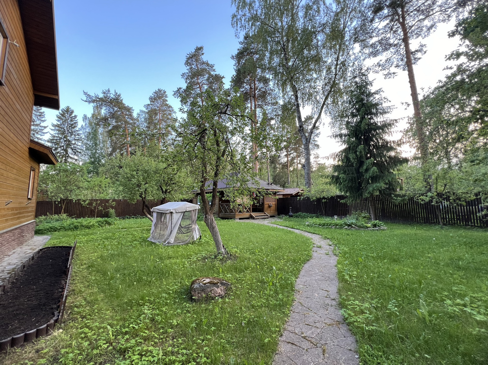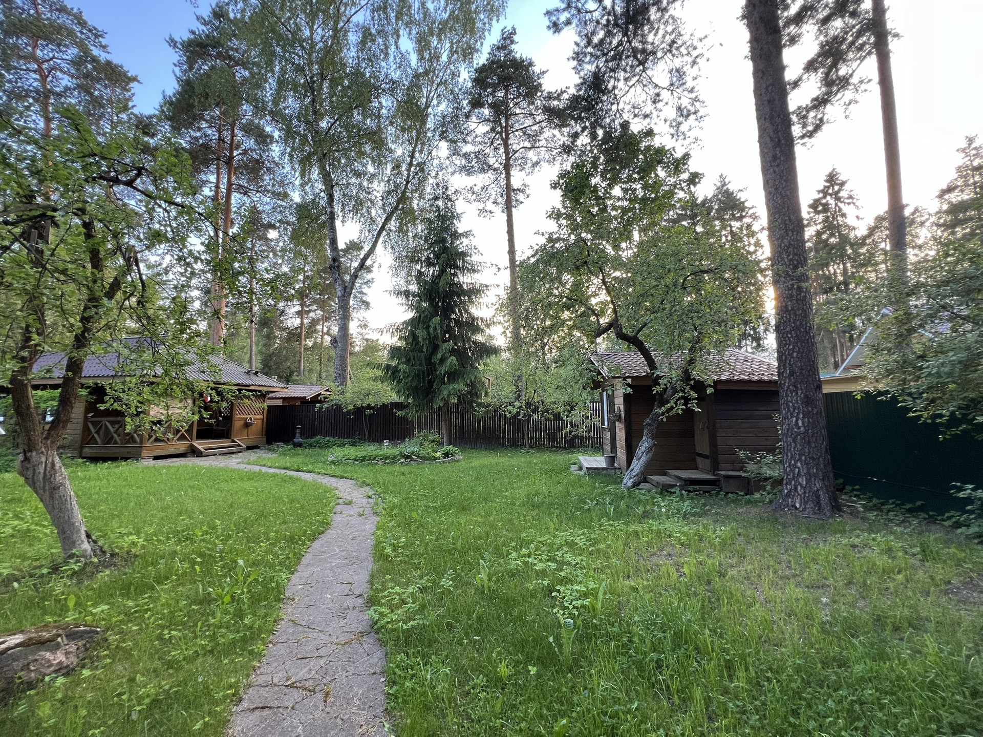 - участок 12 соток, много деревьев, в основном хвойные породы;