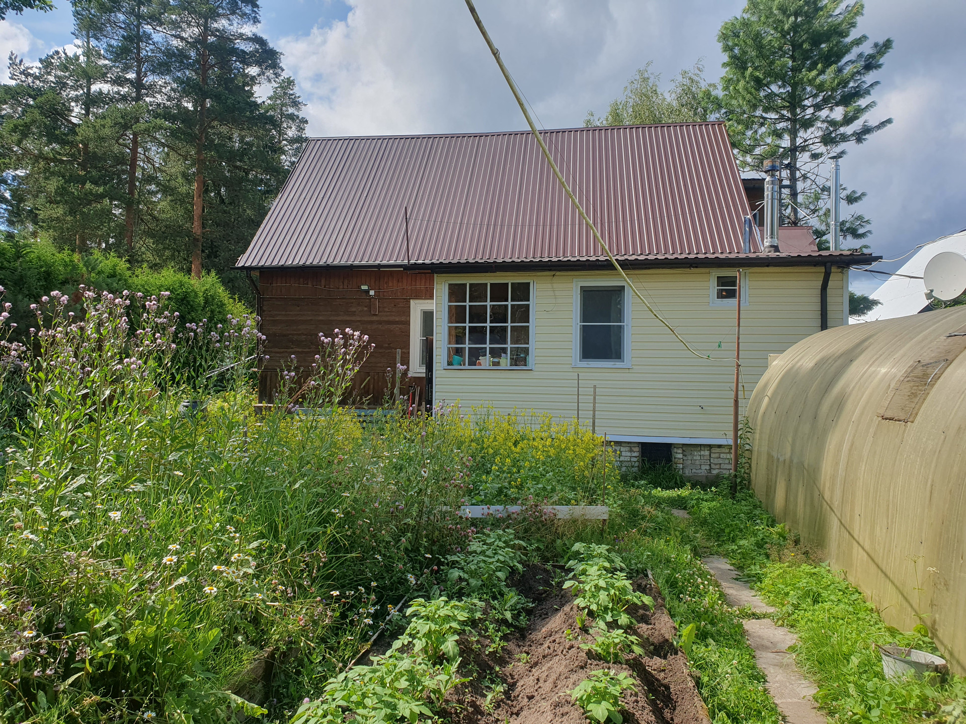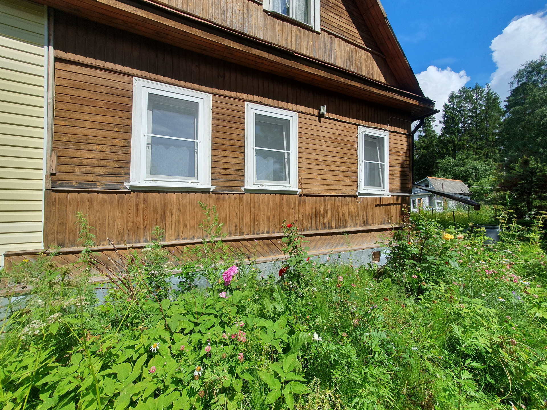 Крепкий зимний дом выполнен из бревна на ленточном фундаменте. Сделан ремонт. Подведены все коммуникации. В доме три комнаты, просторная кухня, санузел. Отопление газовый котел (центральный газ), Вода заведена в дом о скважины. Канализация-септик. Участок ухожен, растут плодовые деревья, вокруг сосны. На территории есть баня, хозяйственные постройки. В 10 минутах пешком расположены песчаные пляжи, Храм, рядом автобусная остановка. В 15 минутах ж/д станция.