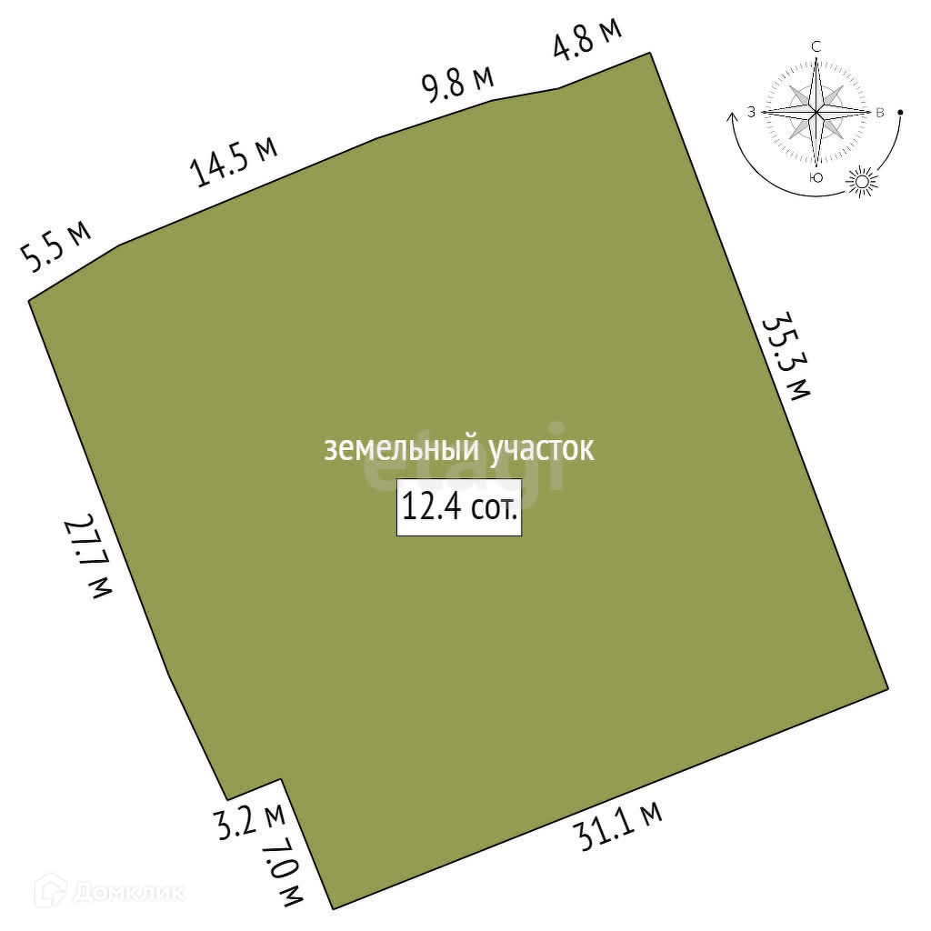 Площадь участка 12.5 сот.