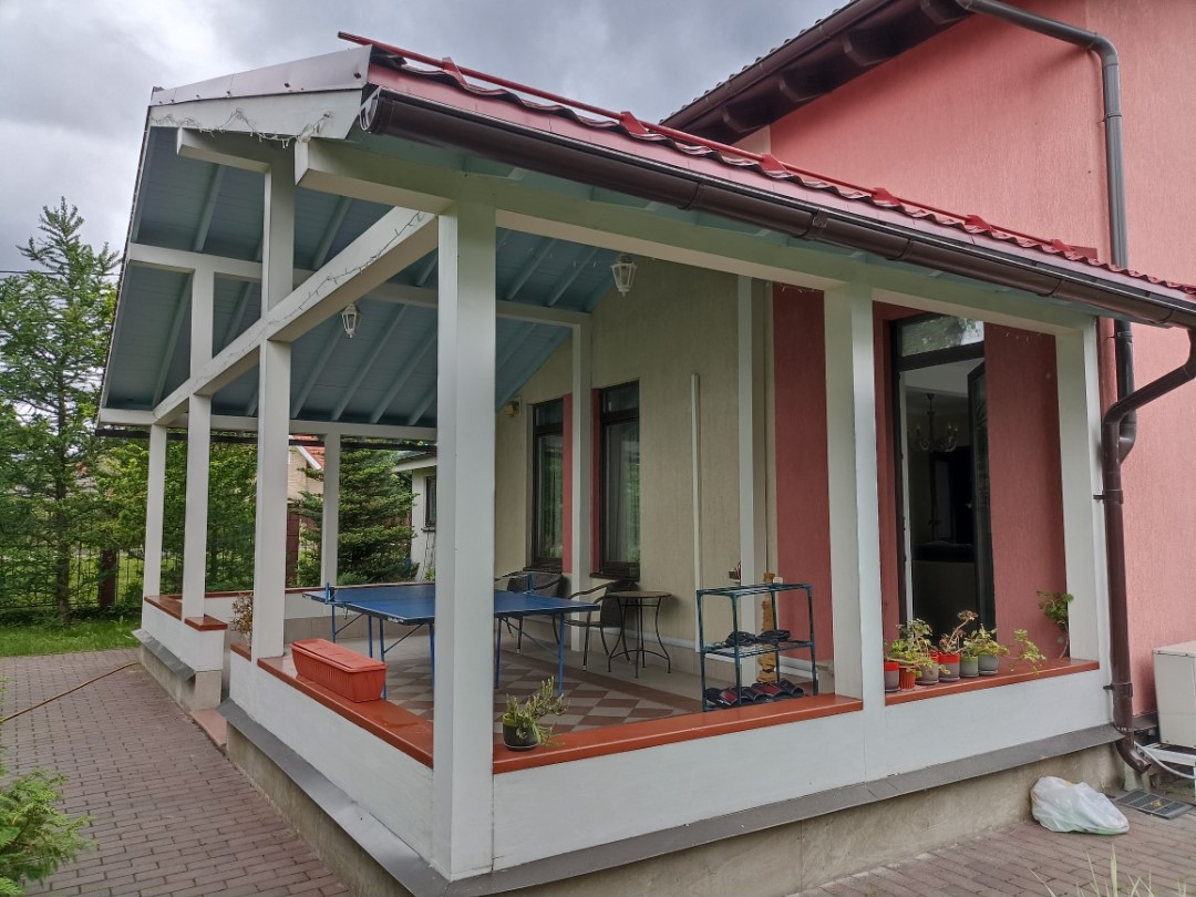 Продается двухэтажный коттедж с панорамными окнами ( 144м²+ терраса 32 м²) в закрытом охраняемом посёлке Янино-1 . Крыша- глиняная черепица, стены - сэндвич -панели. Двойные стеклопакеты в деревянных рамах (!).Дом ( и весь посёлок)со ВСЕМИ централизованными коммуникациями (вода, газ, электричество 15 кВт, канализация, взрослый сад из хвойных и плодовых деревьев, с цветущими кустами (азалии, магнолии, спирея, сирень...),с просторной деревянной беседкой около 9 м). На участке (10.34 сотки) теплый большой гостевой домик/ хозблок/мастерская из газобетона (36 м.) с высоким потолком. Две комнаты, одна с тёплым полом. Большая мощёная парковка для двух машин под крышей и открытая для трех. Кованый забор, откатные автоматические ворота. Поселок находится под круглосуточной охраной и видеонаблюдением. На его территории две детские площадки, чистые широкие асфальтированные дороги, широкие ухоженные газоны, салон-парикмахерская. В 1 км. - детский сад, новые школы (!),поликлиника, церковь, аптеки, магазины, кафе, развивающие детские центры, почта. Непосредственно рядом с коттеджным поселком - остановка общественного транспорта(маршрут до м. Ладожская - 20-25 мин). В 2 км .от поселка въезд на КАД, 4 км до пр. Косыгина. В 1 км находится спорт центр с бассейном ,кортом и полем для мини футбола(Петроспорт), В доме высокие потолки (1 этаж -2.75, на 2 этаже до 4 м), действующий камин, большой бойлер, теплые полы в санузлах и коридорах. В комнатах установлены кондиционеры. На втором этаже большой застекленный балкон (обшит пробковым деревом). Этот закрытый для посторонних посёлок- безопасная зона для детей! Дети самостоятельно гуляют по всей территории круглый год!)). Пропуск на территорию посёлка осуществляется только по личному сообщению домовладельцев охране. В посёлке однородная социальная среда, хорошие соседи, проводятся праздники. Дополнительная информация и просмотр по запросу. Разумный торг.