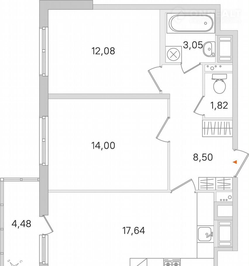 2-комнатная квартира, 58.4 м2, этаж 3 / 8, на продажу в городском посёлке Янино-1