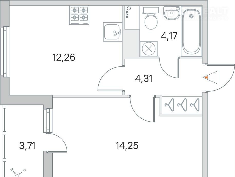 Площадь кухни 12.3 м2