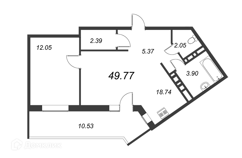 Общая площадь 49.77 м2
