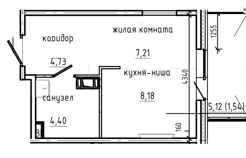 Общая площадь 26.06 м2