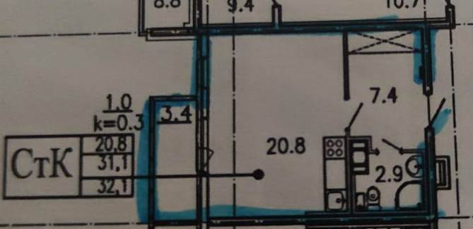 Общая площадь 32.1 м2