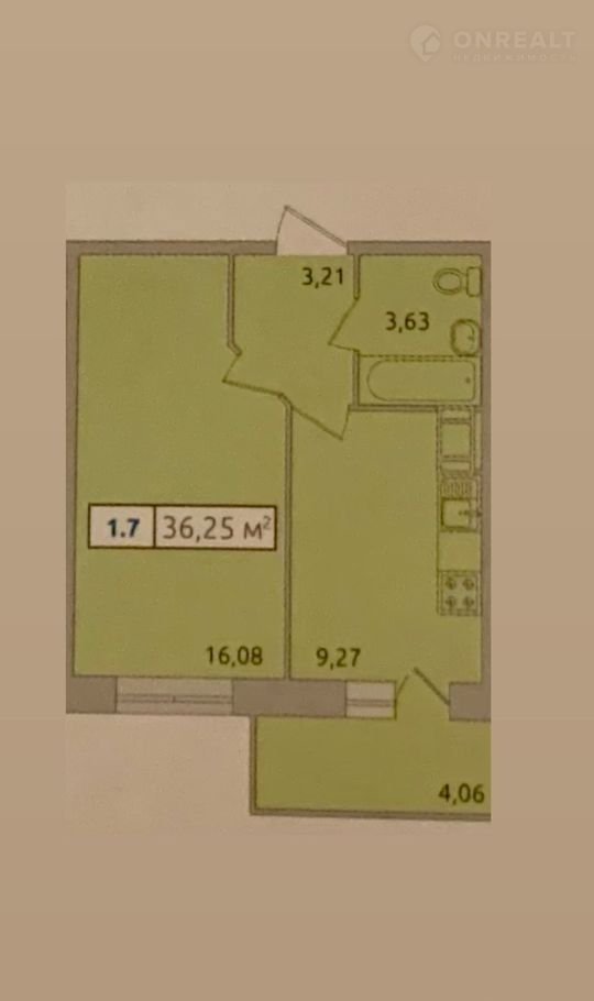 Общая площадь 36 м2