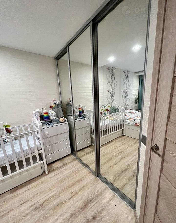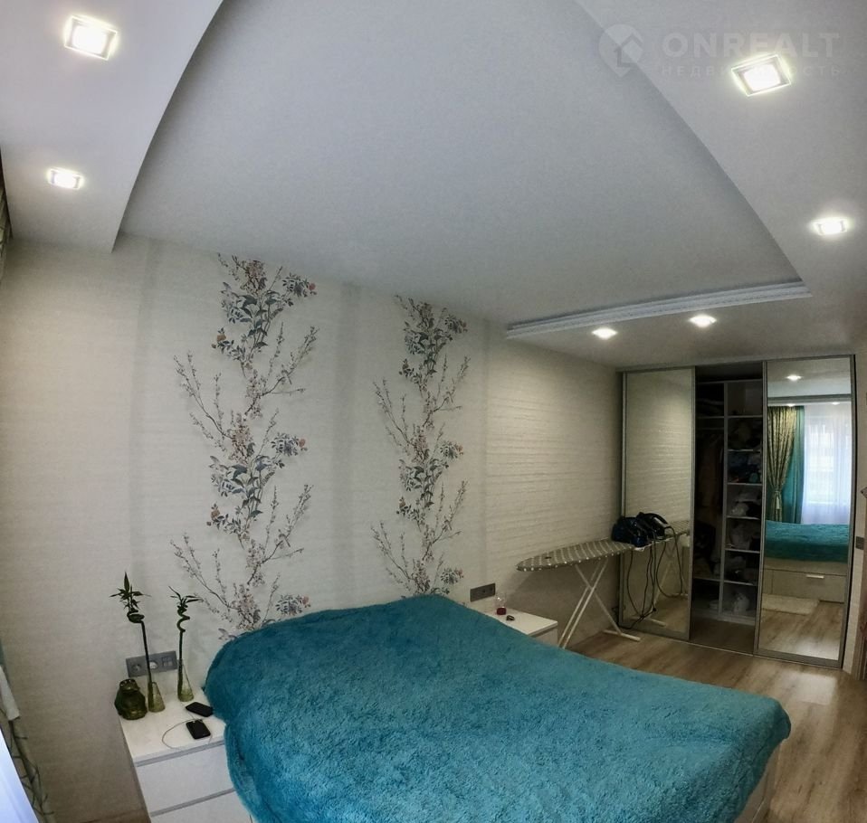 Сделан ремонт с использованием качественных материалов. Делали все для себя, продумана каждая мелочь. В комнате встроена гардеробная с зеркальными дверьми в пол.
