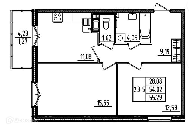 Общая площадь 55.3 м2
