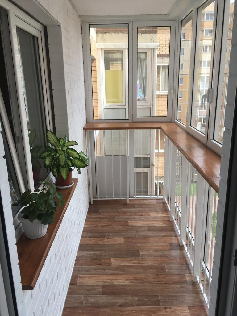 Просторная лоджия, остаётся встроенная мебель.