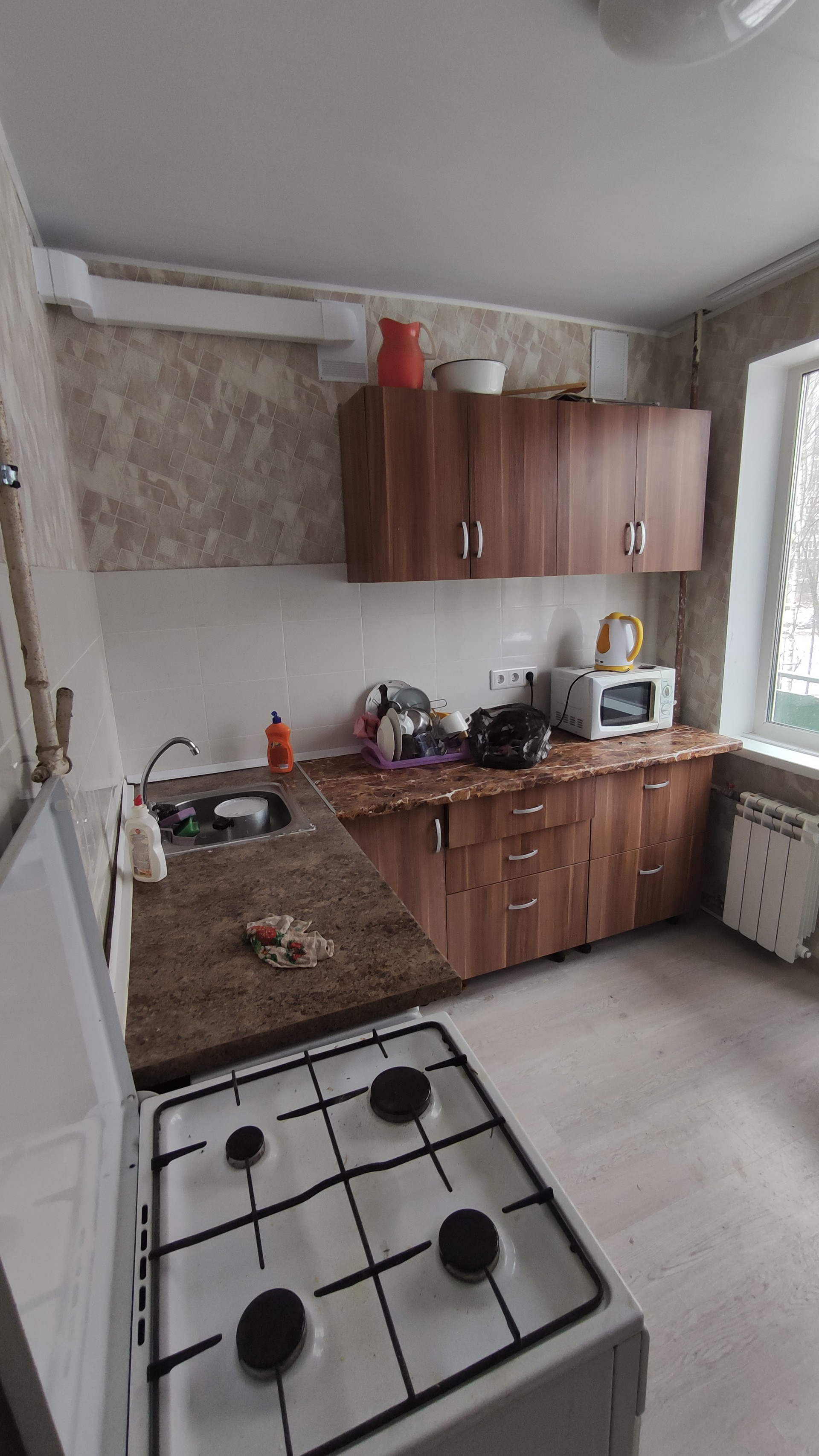 Плита газовая, горячая вода, новый водонагреватель.