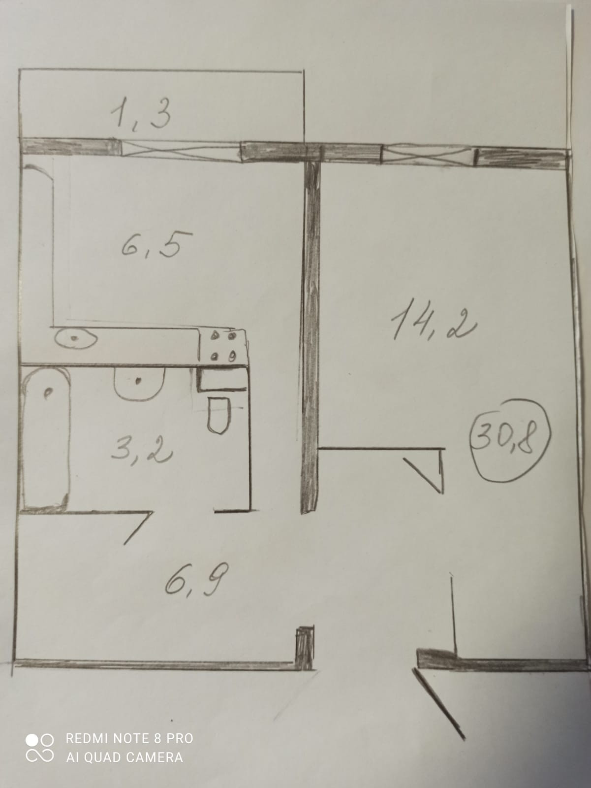Общая площадь 30.8 м2