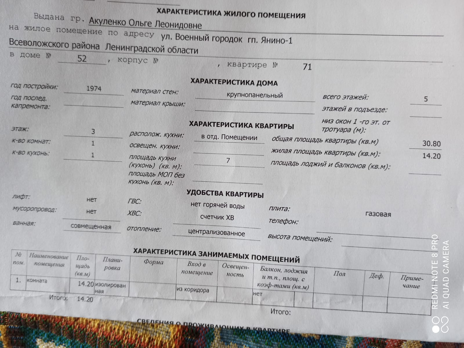 Жилая площадь 14.2 м2