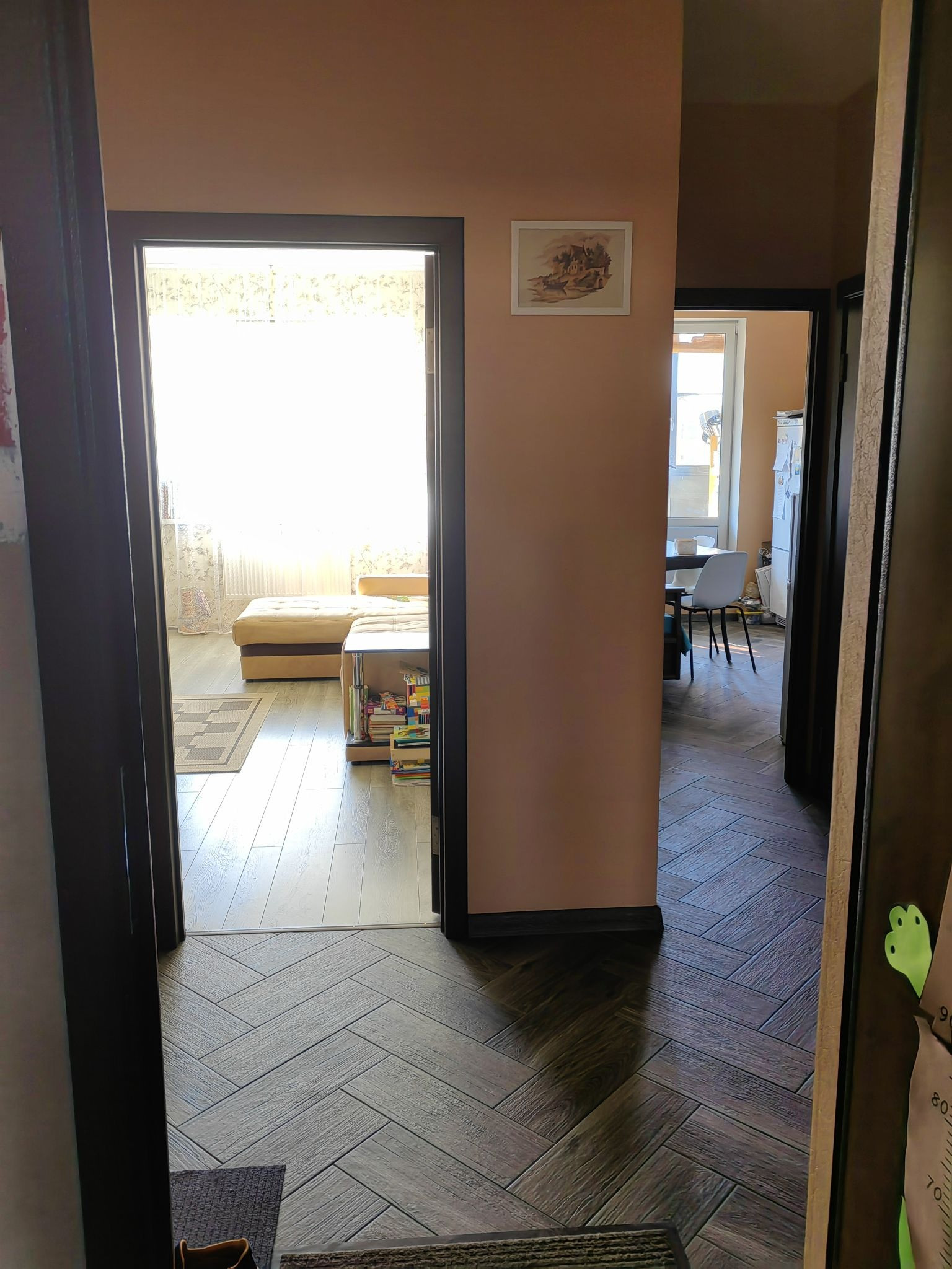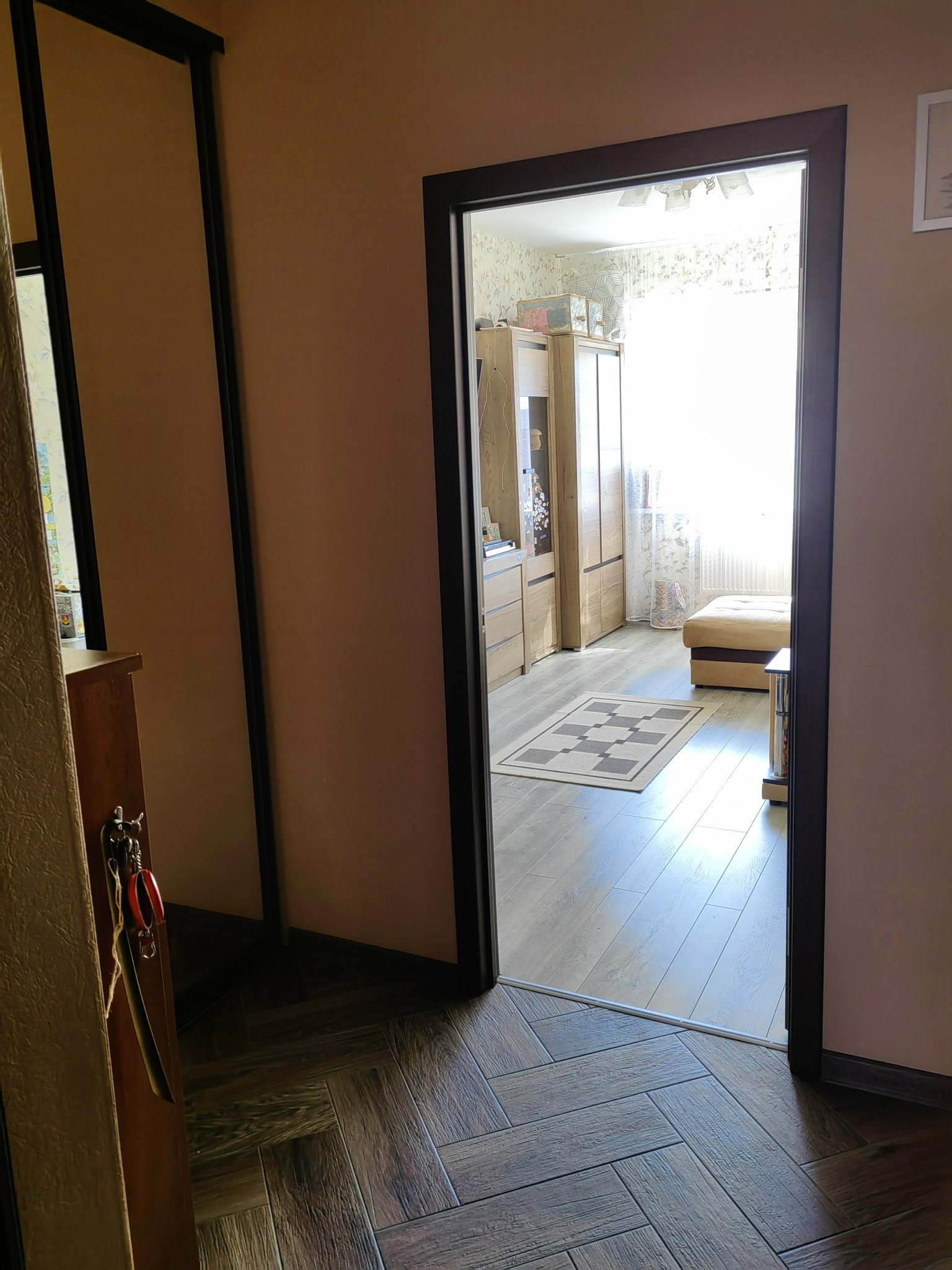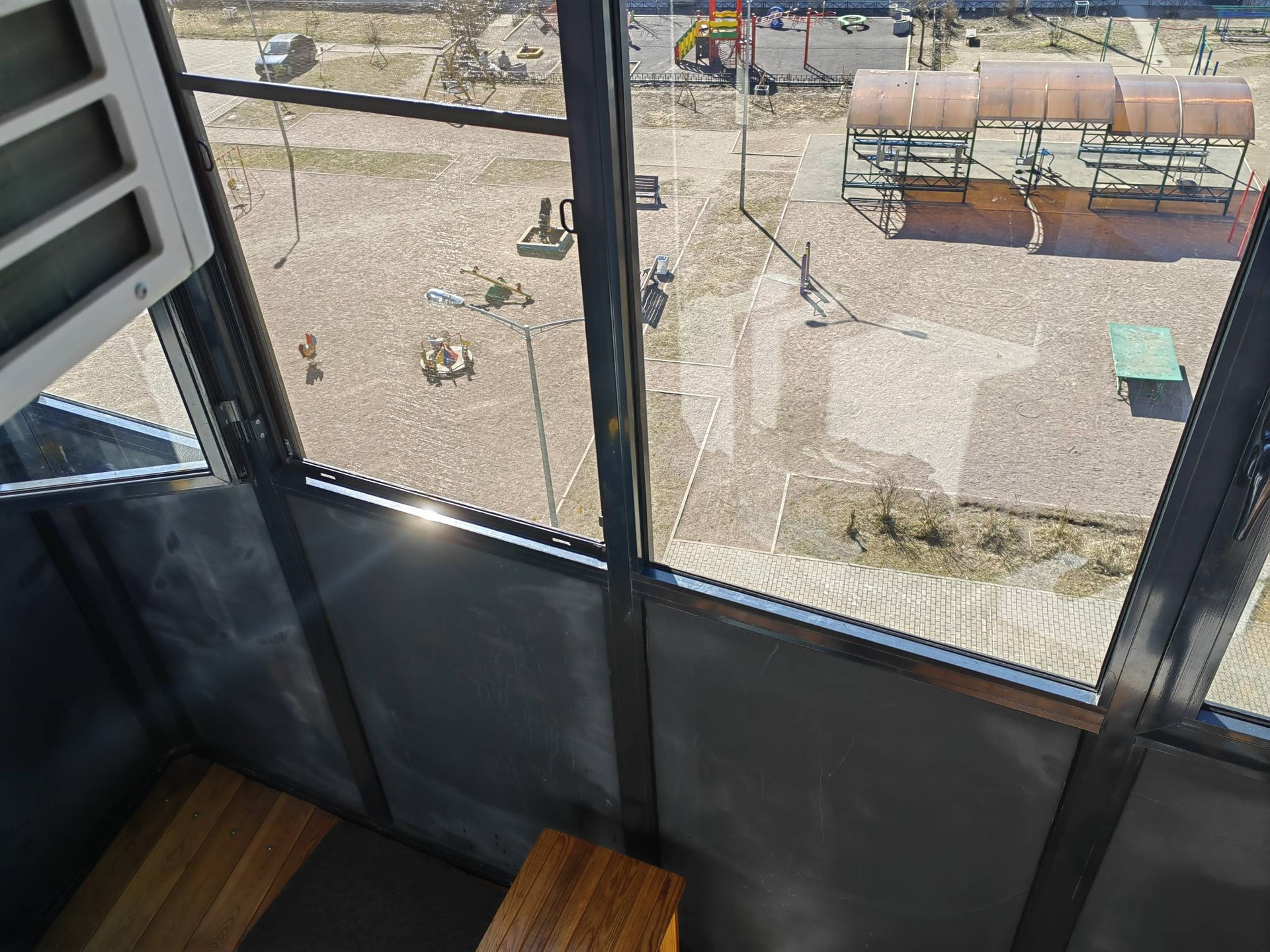 Окна выходят во двор, на детскую площадку.
