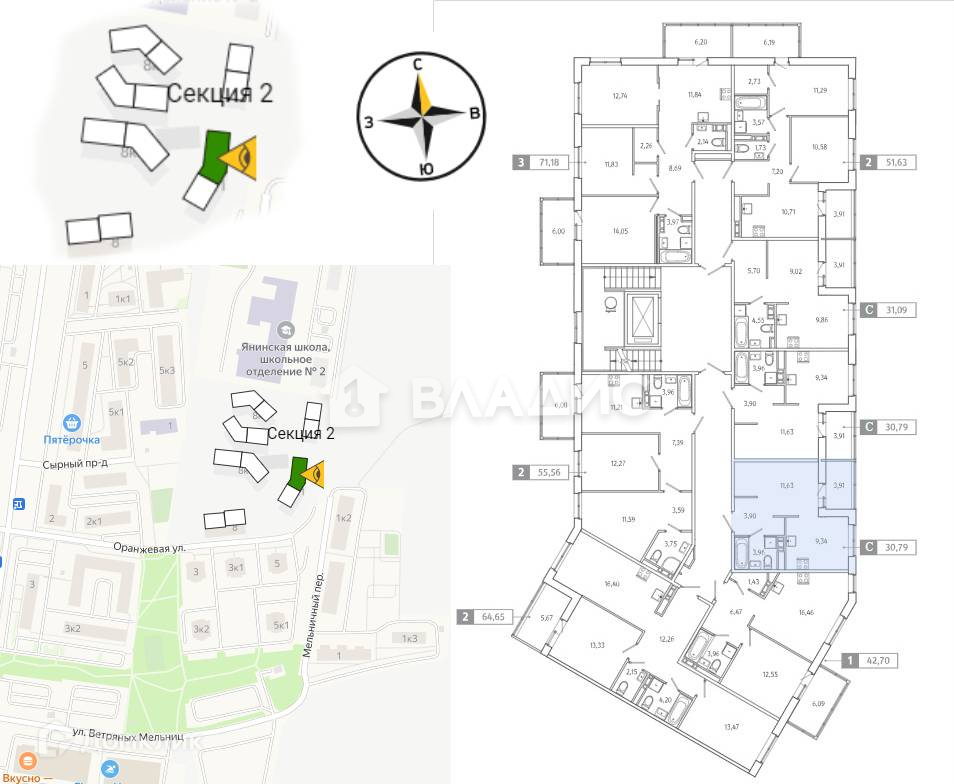 Общая площадь 30.79 м2