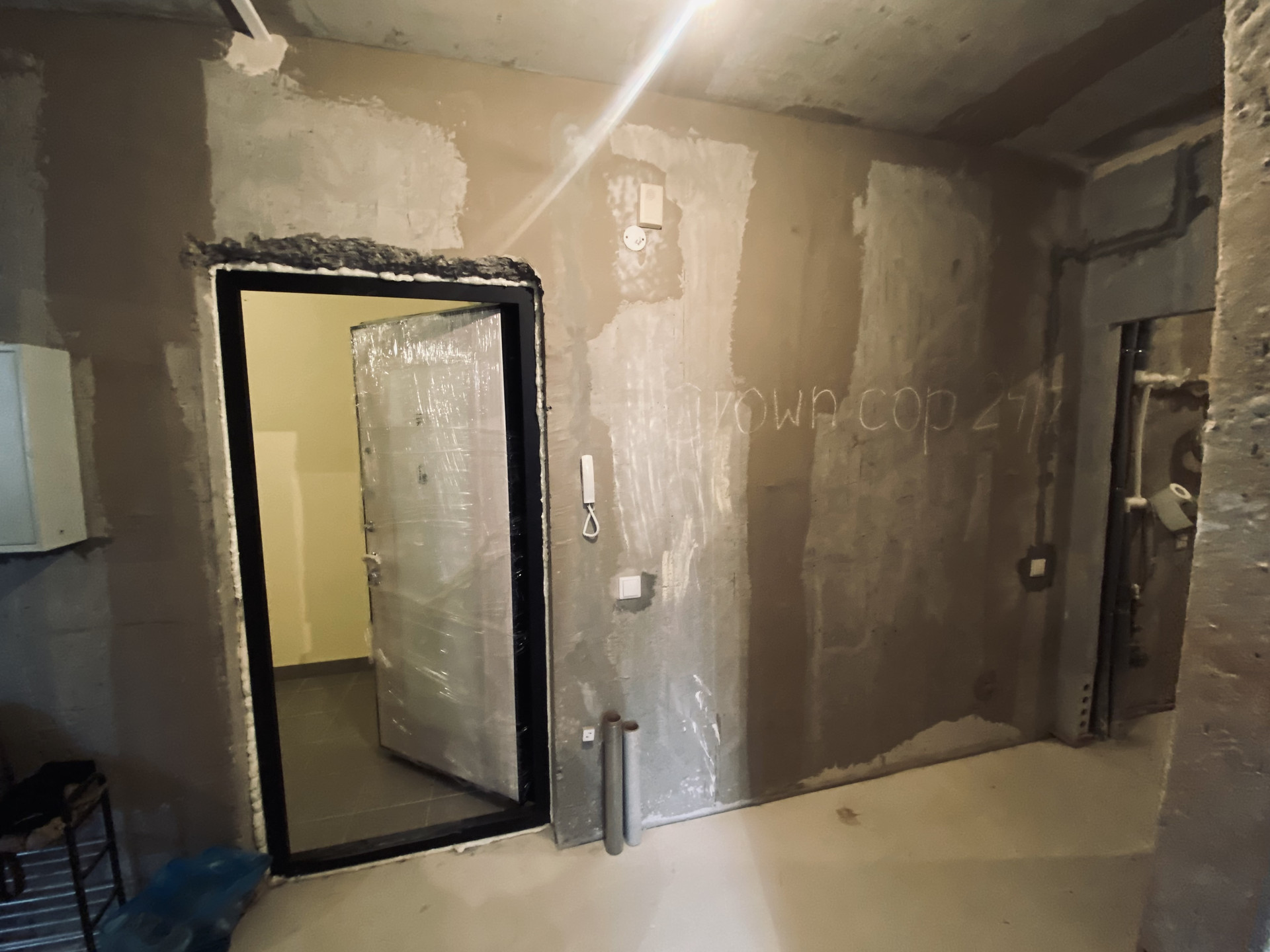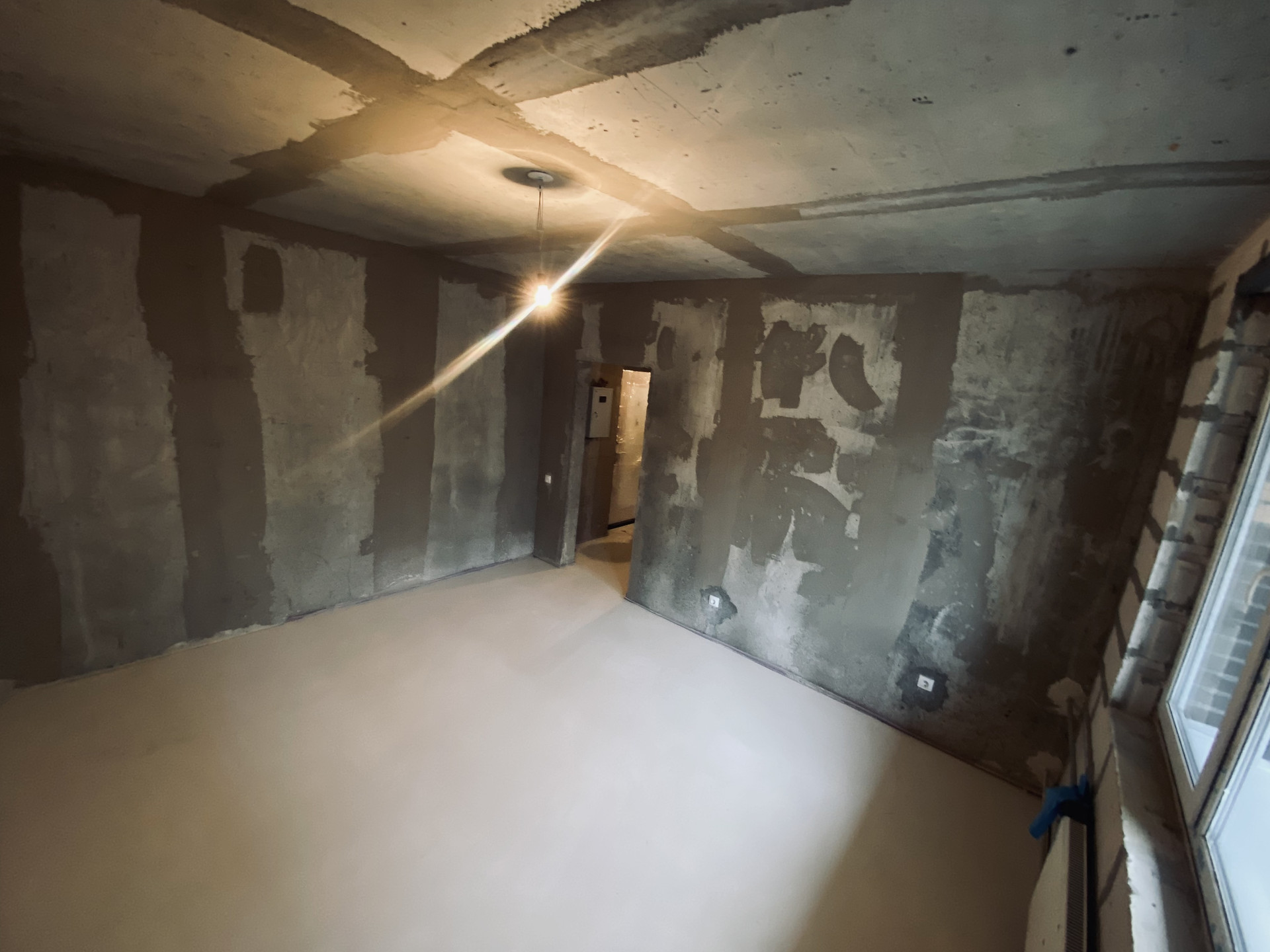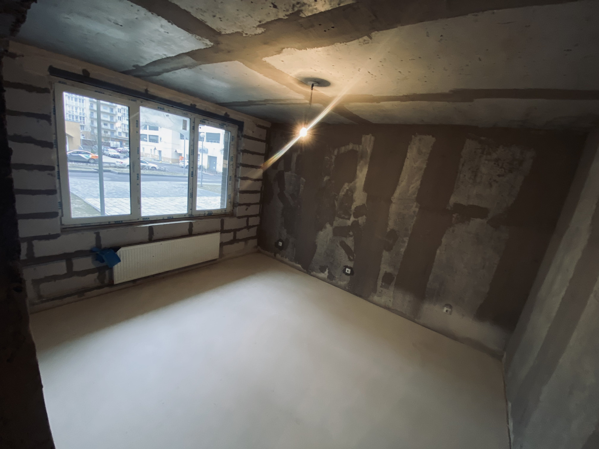 Застройщиком выполнены: хорошая стяжка пола, разводка электроэнергии, установлены счетчики, стеклопакеты и радиаторы отопления.