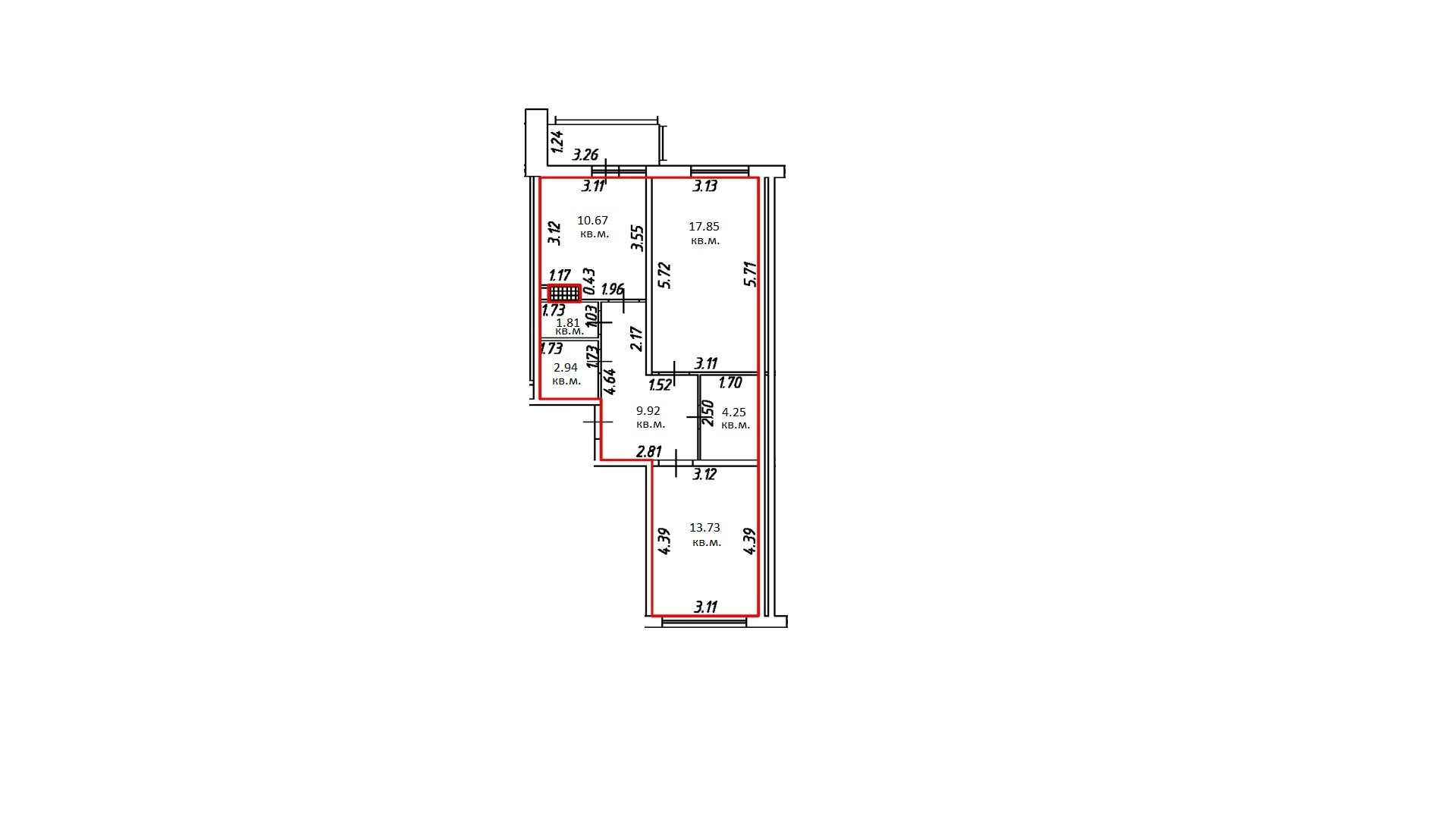 Жилая площадь 31.58 м2
