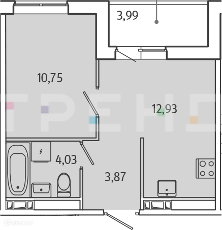 Площадь кухни 12.93 м2