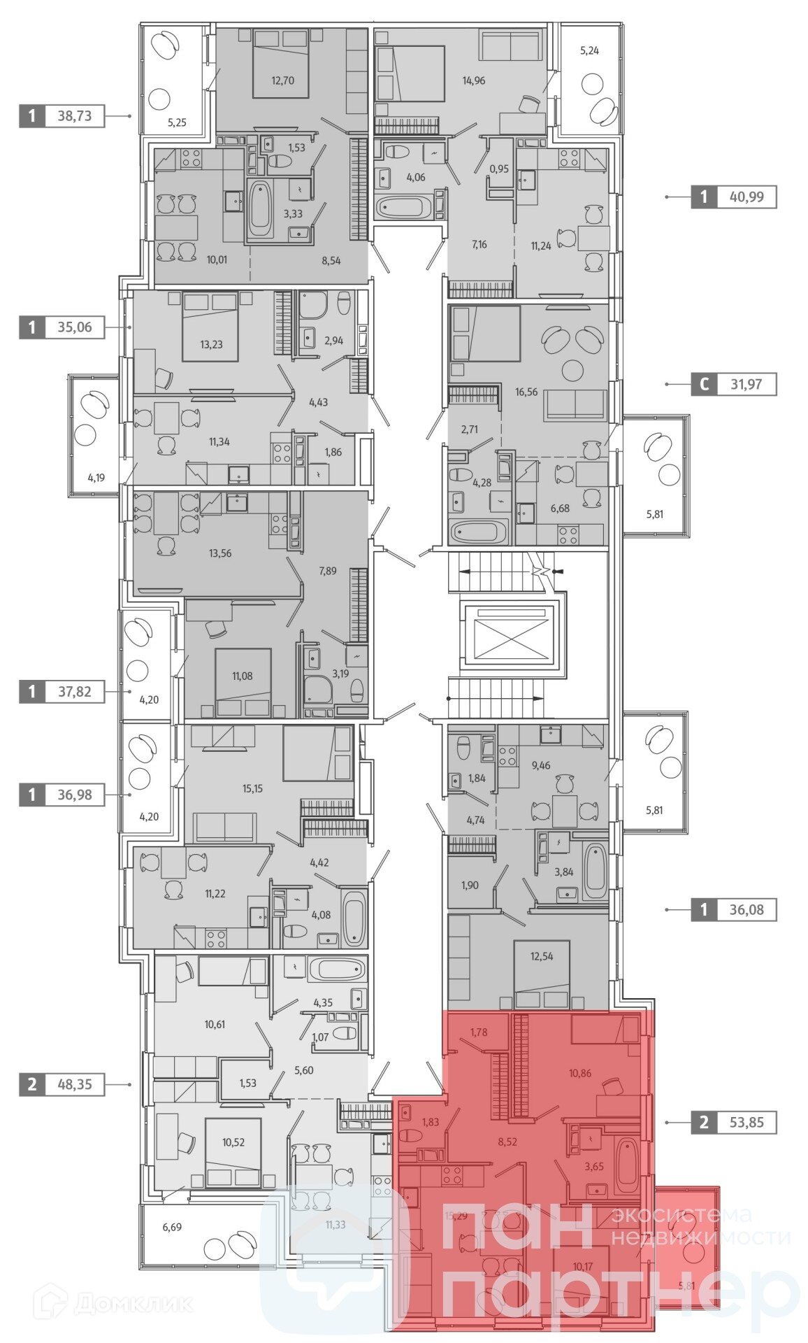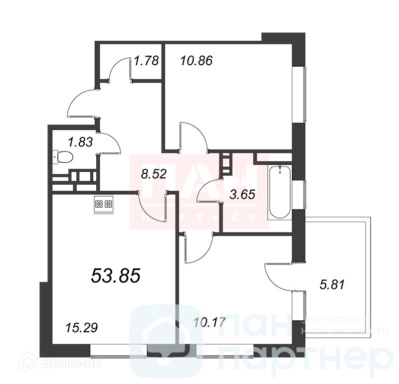 Общая площадь 53.5 м2